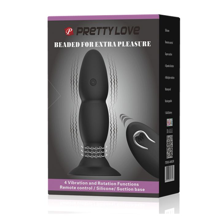 Анальная пробка с вибрацией, ротацией у основания и дистанционным управлением - 13,5 см.