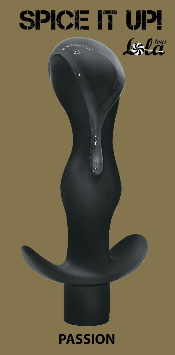 Черная фигурная анальная пробка с вибрацией Passion - 14 см.