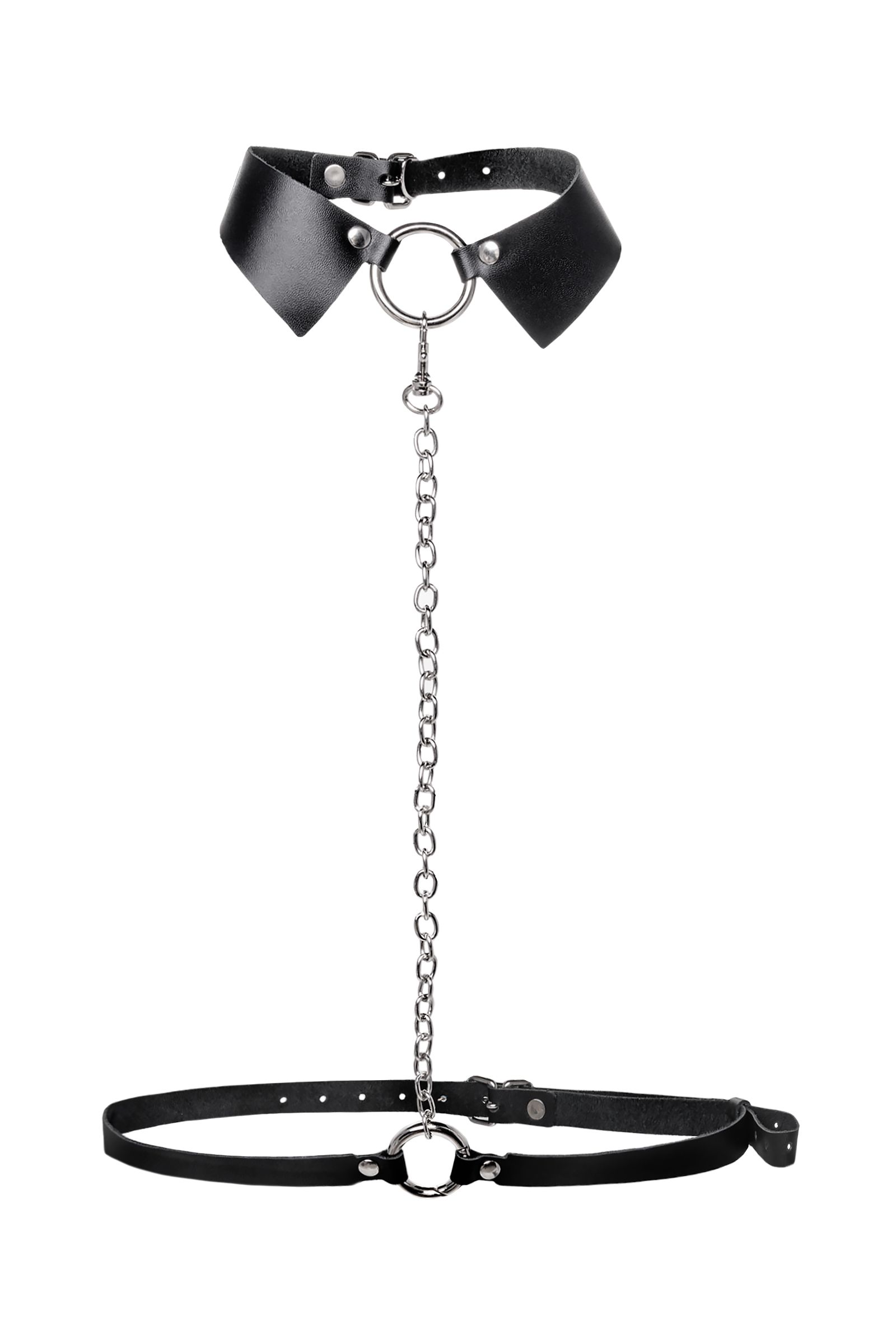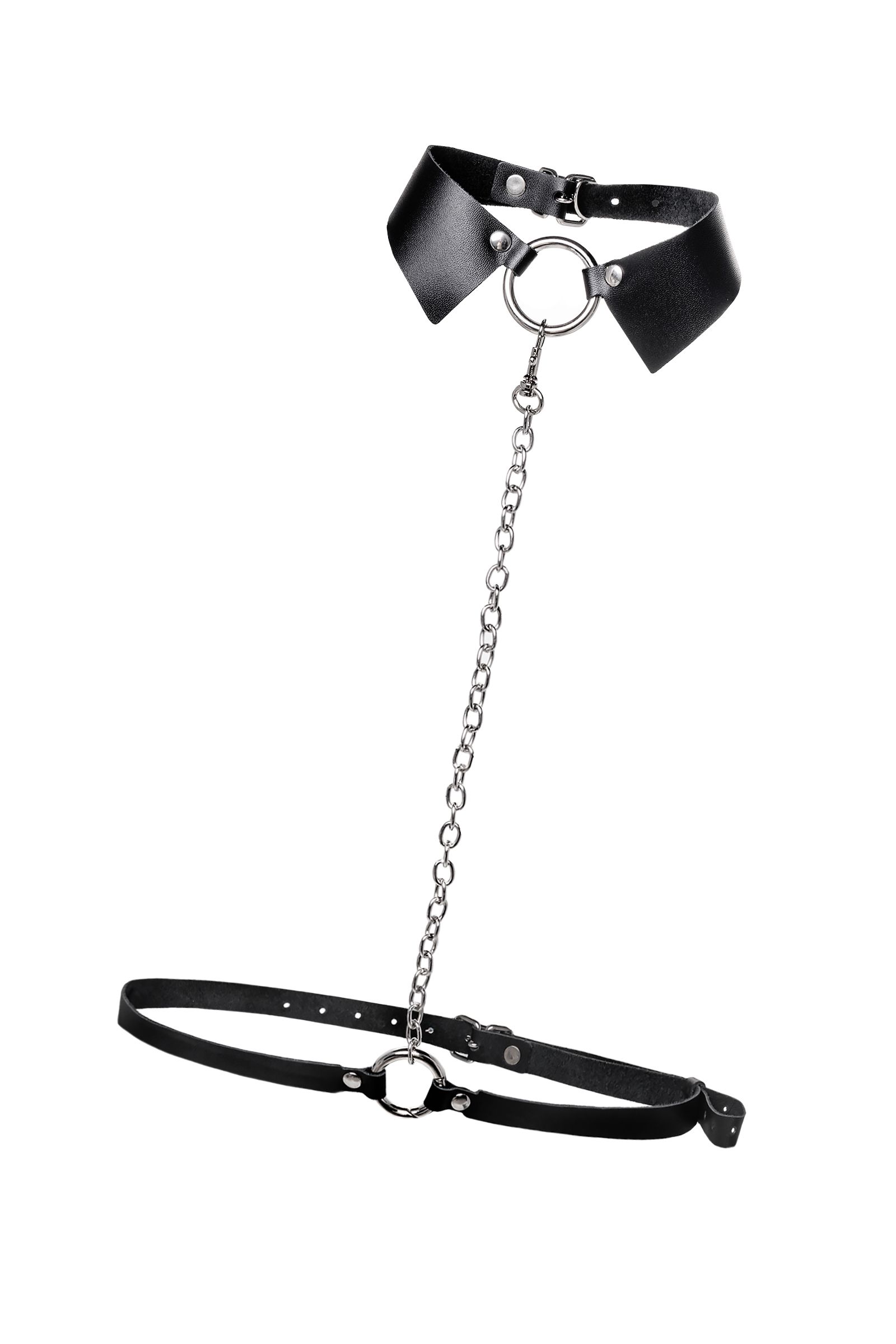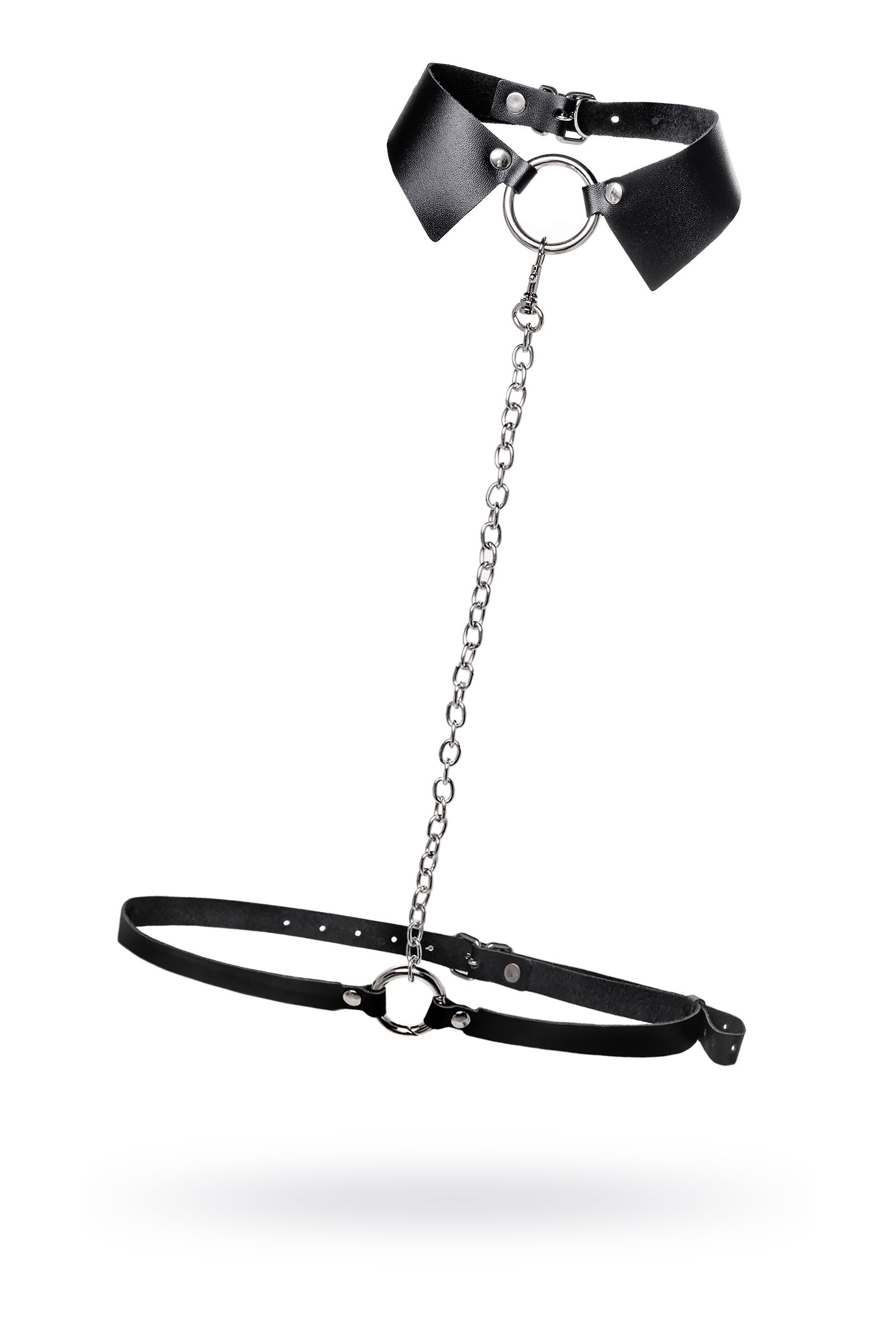 Портупея предназначена на зону шеи и живота. Аксессуар состоит из кожаного воротничка, ремней и металлической цепочки. Преимущество данной портупеи в том, что она легко превращается в ошейник с поводком или без. Натуральная кожа в меру мягкая, не тянется. Материал не вызывает раздражения и приятен на ощупь. Имеет универсальный размер и хорошо садится на девушках с любым телосложением. Регулируется по ширине с помощью стальной застежки. Чокер декорирован металлическим кольцом. К нему крепится небольшой, съемный карабин, который соединяет воротник-ошейник с поясом. Хотите подразнить партнера? В любой момент ремни на талии можно легко и быстро снять, с помощью удобного кольца-карабина. Достаточно только нажать на него и благодаря паре движений превратить пояс в ручку от поводка. Атрибут подчеркивает талию и создаёт акцент на груди. Используйте портупею как яркий аксессуар в гардеробе: сочетайте с рубашкой, водолазкой, платьем, нижним бельем.
