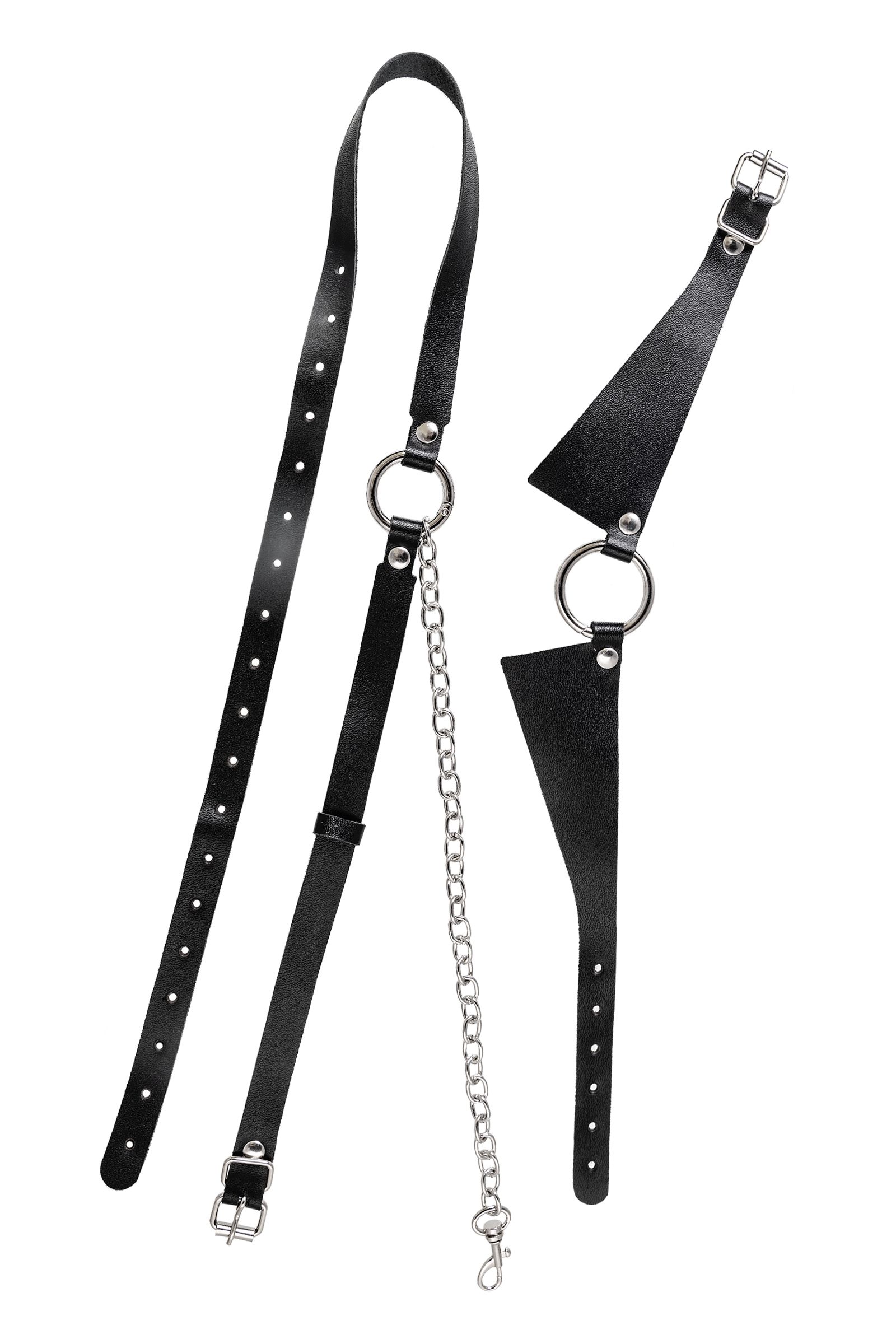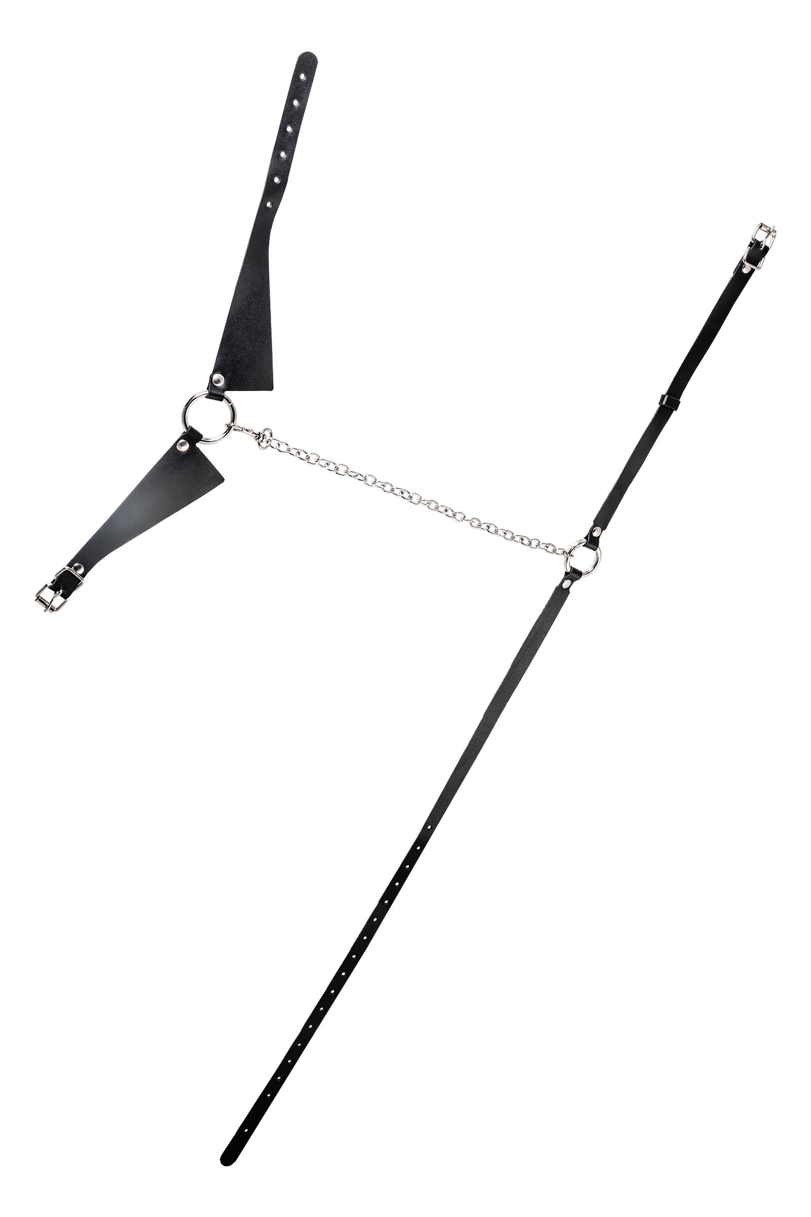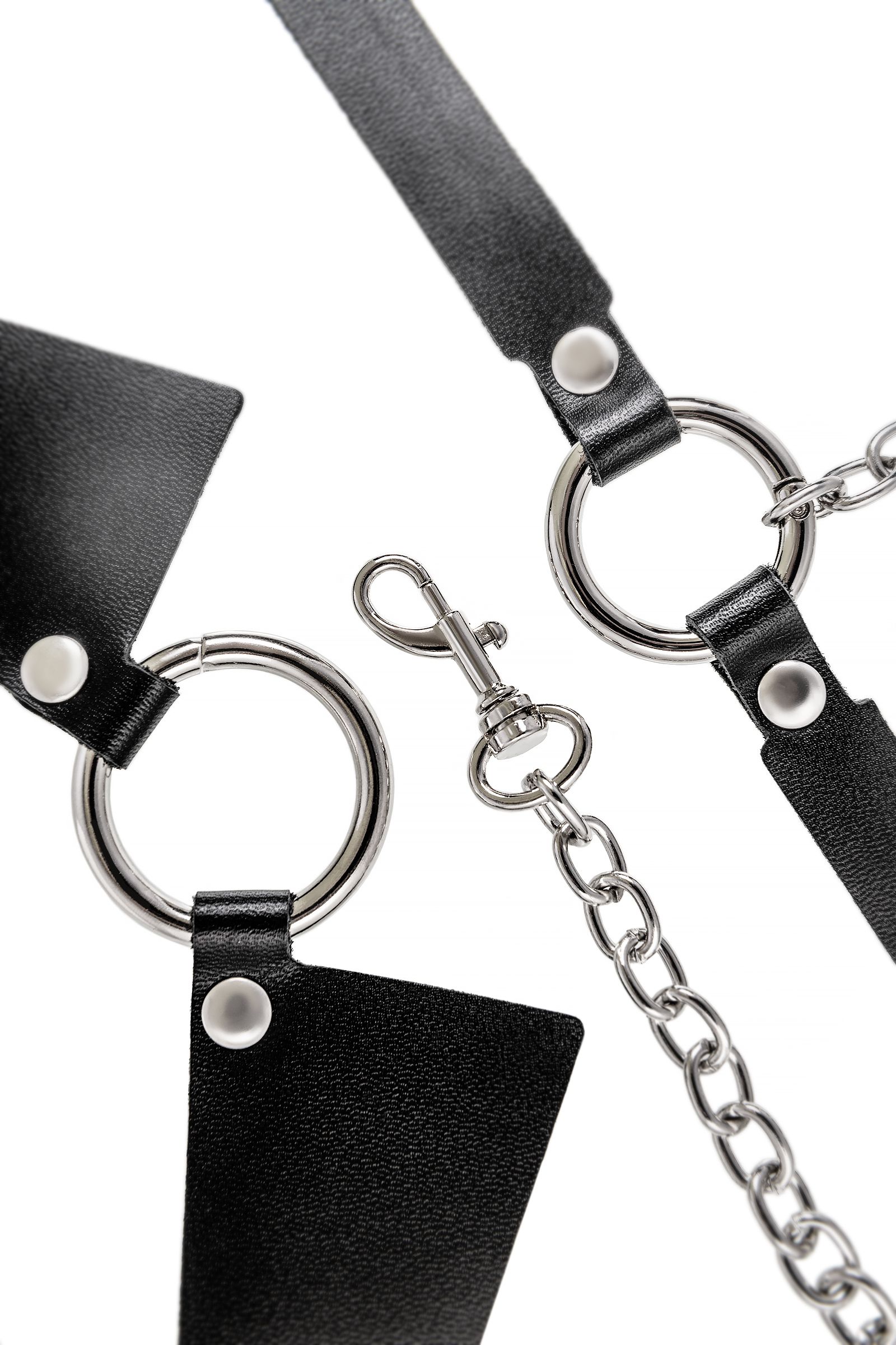 Портупея предназначена на зону шеи и живота. Аксессуар состоит из кожаного воротничка, ремней и металлической цепочки. Преимущество данной портупеи в том, что она легко превращается в ошейник с поводком или без. Натуральная кожа в меру мягкая, не тянется. Материал не вызывает раздражения и приятен на ощупь. Имеет универсальный размер и хорошо садится на девушках с любым телосложением. Регулируется по ширине с помощью стальной застежки. Чокер декорирован металлическим кольцом. К нему крепится небольшой, съемный карабин, который соединяет воротник-ошейник с поясом. Хотите подразнить партнера? В любой момент ремни на талии можно легко и быстро снять, с помощью удобного кольца-карабина. Достаточно только нажать на него и благодаря паре движений превратить пояс в ручку от поводка. Атрибут подчеркивает талию и создаёт акцент на груди. Используйте портупею как яркий аксессуар в гардеробе: сочетайте с рубашкой, водолазкой, платьем, нижним бельем.