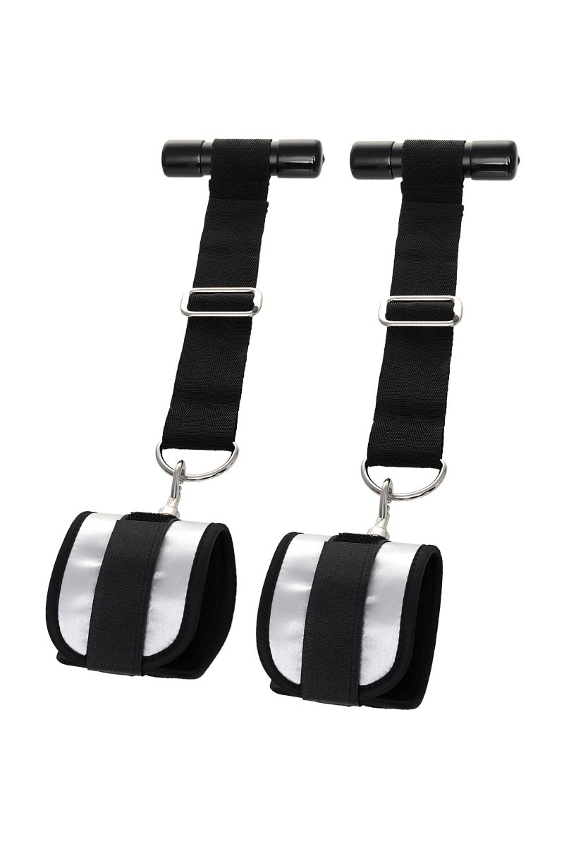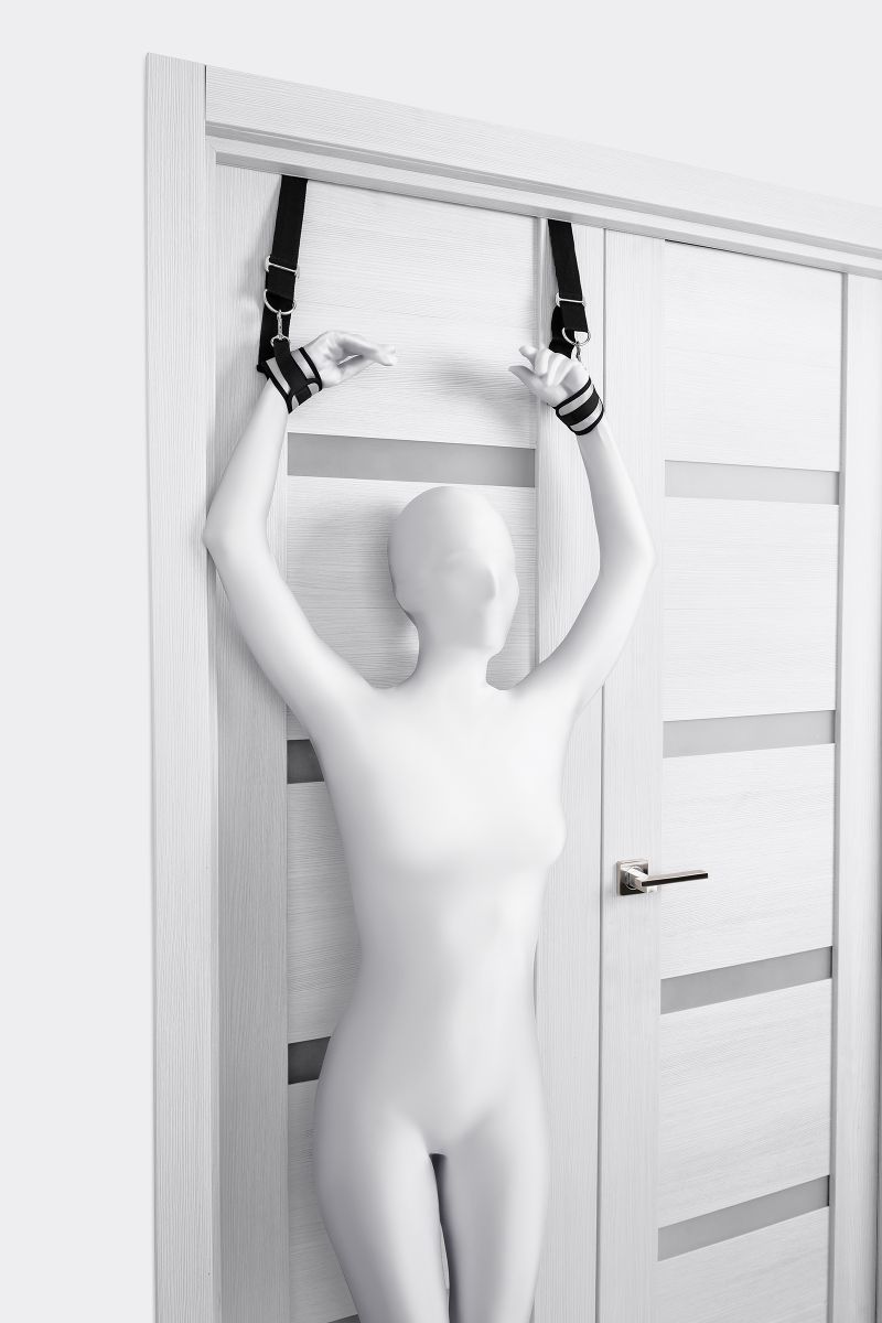 Оставьте наручники и кровать в прошлом веке, пора играть по-взрослому. Фиксаторы для рук на дверь для смелых и терпеливых. Больше позиций для получения удовольствия без силовых затрат! Пластиковые цилиндры фиксируются за дверью, наручники крепятся на запястьях с помощью застежки велкро. Размер легко регулируется ремешками и подойдет для запястий любого размера. Серебряный цвет с черными ремешками смотрится элегантно. Внутренняя часть наручников мягкая и не доставляет дискомфорта во время использования. Фиксаторы с помощью двери дают вам больше свободы для реализации фантазий. Не нужно напрягаться, чтобы удерживать руки вверху, не нужно контролировать своего партнера, если хочется удержать его стоя. Эта оригинальная форма бандажа выведет вас на новый уровень наслаждения с доверием. Длина ремней - 26 см.