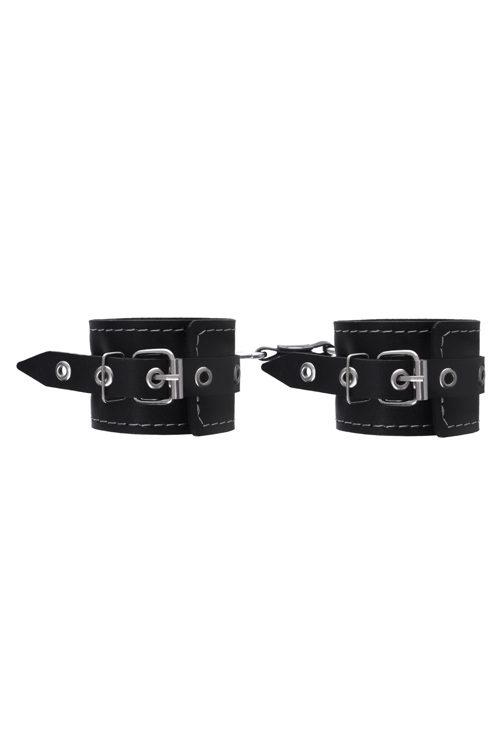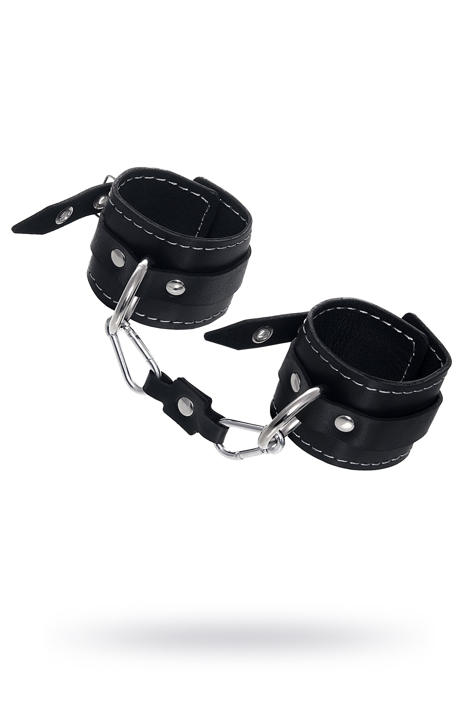 Готовы играть по-взрослому? Не бойтесь своих желаний! Основатели бренда уверены: лучший способ избавиться от искушения - поддаться ему! Добавьте пикантную деталь в ролевую игру и воплотите самую смелую сексуальную фантазию в реальность! Двухслойные кожаные наручники с контрастной строчкой белого цвета могут стать стильным аксессуаром на «свободных» руках, но могут послужить вашим целям и фантазиям по своему прямому назначению. Наличие двух карабинов и колец позволяет использовать изделие как раздельно – аксессуар-манжеты, так и как наручники для фиксации. К широким металлическим кольцам также можно присоединить и другие аксессуары при помощи карабинов. Благодаря универсальному размеру наручники могут использоваться и мужчинами, и женщинами. Размер легко регулируется с помощью металлических пряжек, органично вписывающихся в общий стиль. Ширина манжет 5,5 см, длина манжет 20 см, однако может регулироваться благодаря пряжке. Длина манжет - 20 см, ширина - 5,5 см.