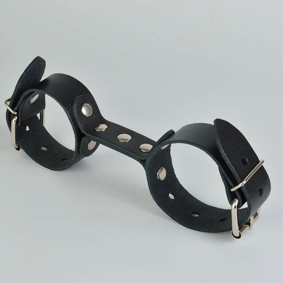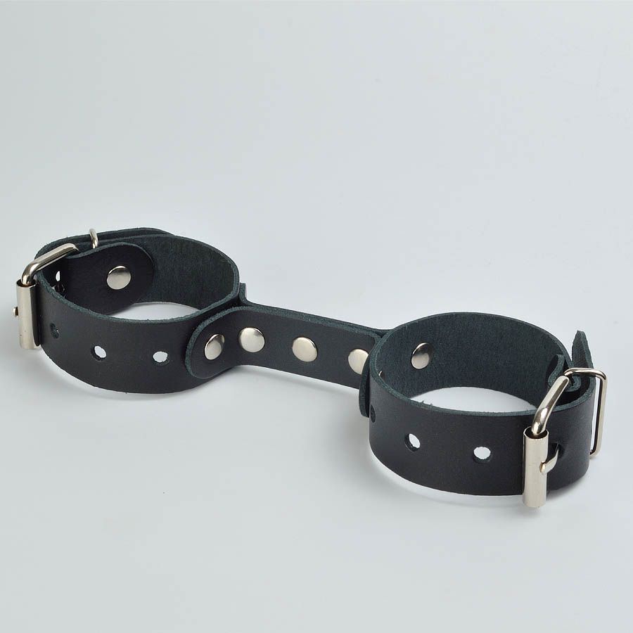 Черные кожаные наручники-фиксатор