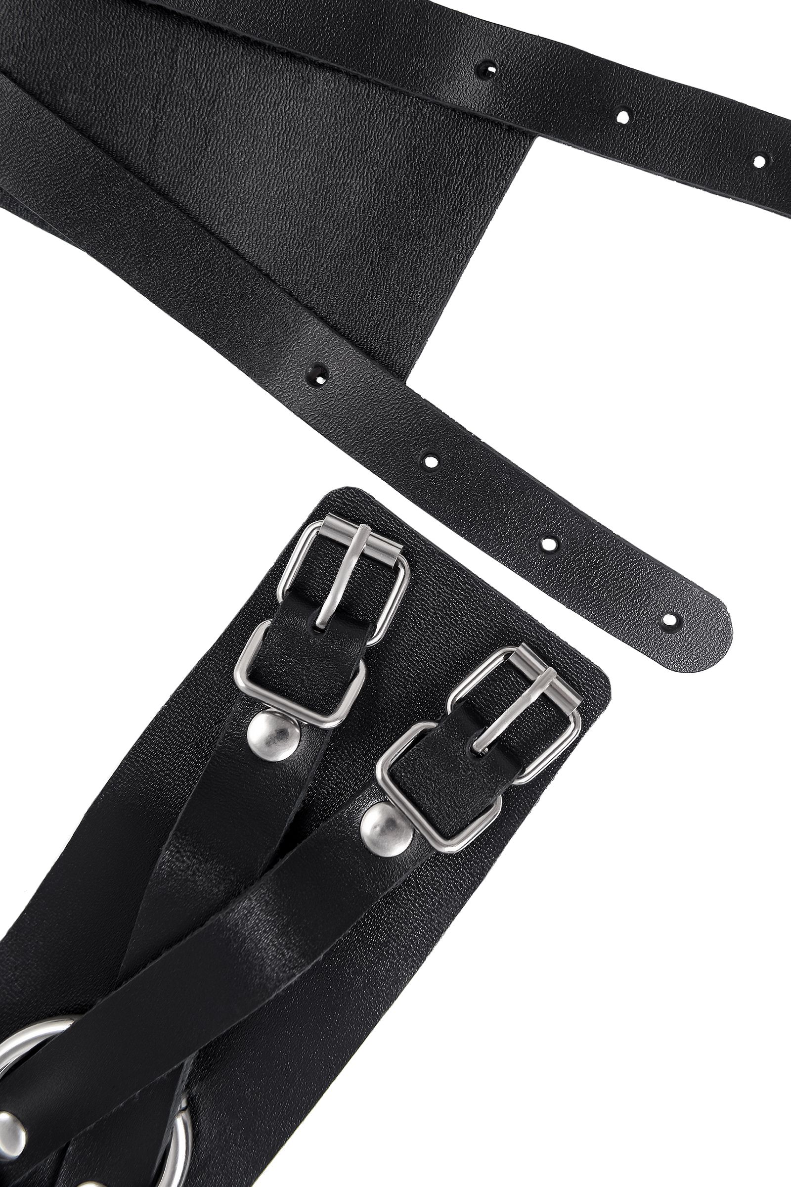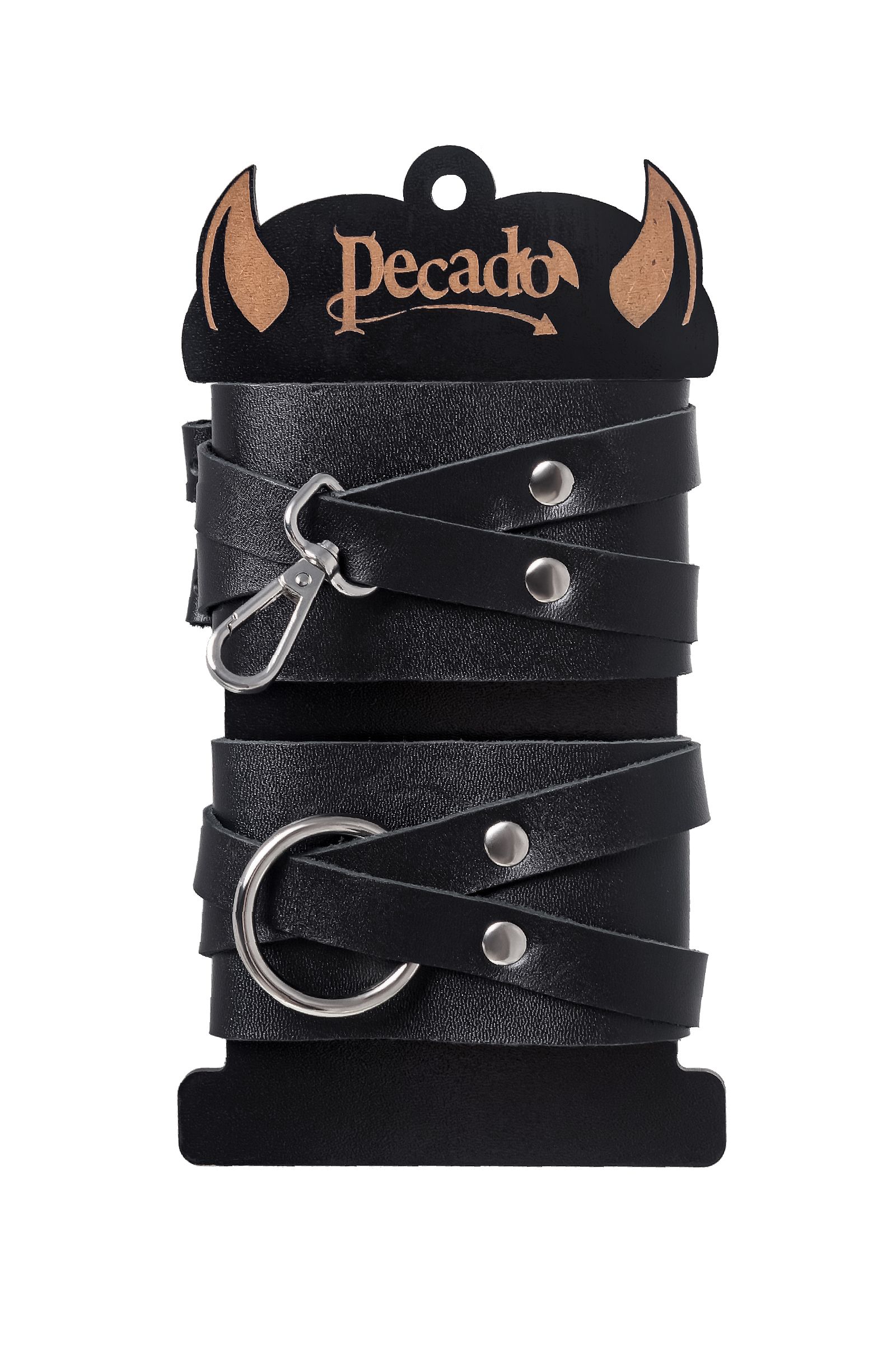 Черные оковы с оригинальным дизайном от российского производителя Pecado созданы для Вашего наслаждения. Они отлично смотрятся как на женских, так и на мужских ногах. Каждая деталь оков сделана с огромным трепетом и вручную. Аксессуар приятно держать в руках, а также использовать по назначению. Натуральная, экологичная кожа с терпкий ароматом обладает хорошей износостойкостью. Материал плотный, прекрасно держит форму и не мнется. Благодаря хорошей ширине манжет и металлической застежке, оковы отлично фиксируют ноги. Вся фурнитура высокого качества. На ремешках имеется хороший запас регулировки, что позволяет подобрать необходимый размер. Обе манжеты обладают разным дизайном. Главное отличие от других изделий в металлических деталях: на одном наручнике большое кольцо, на другом – карабин. При желании атрибут возможно дополнить другими аксессуарами. Длина манжет – 25,5 см, ширина – 6 см.