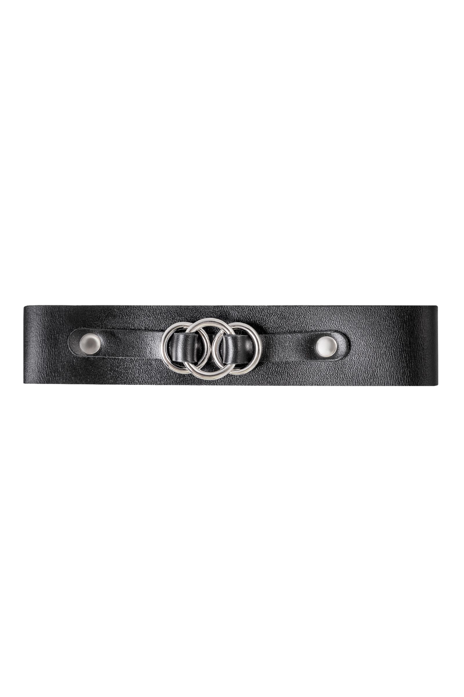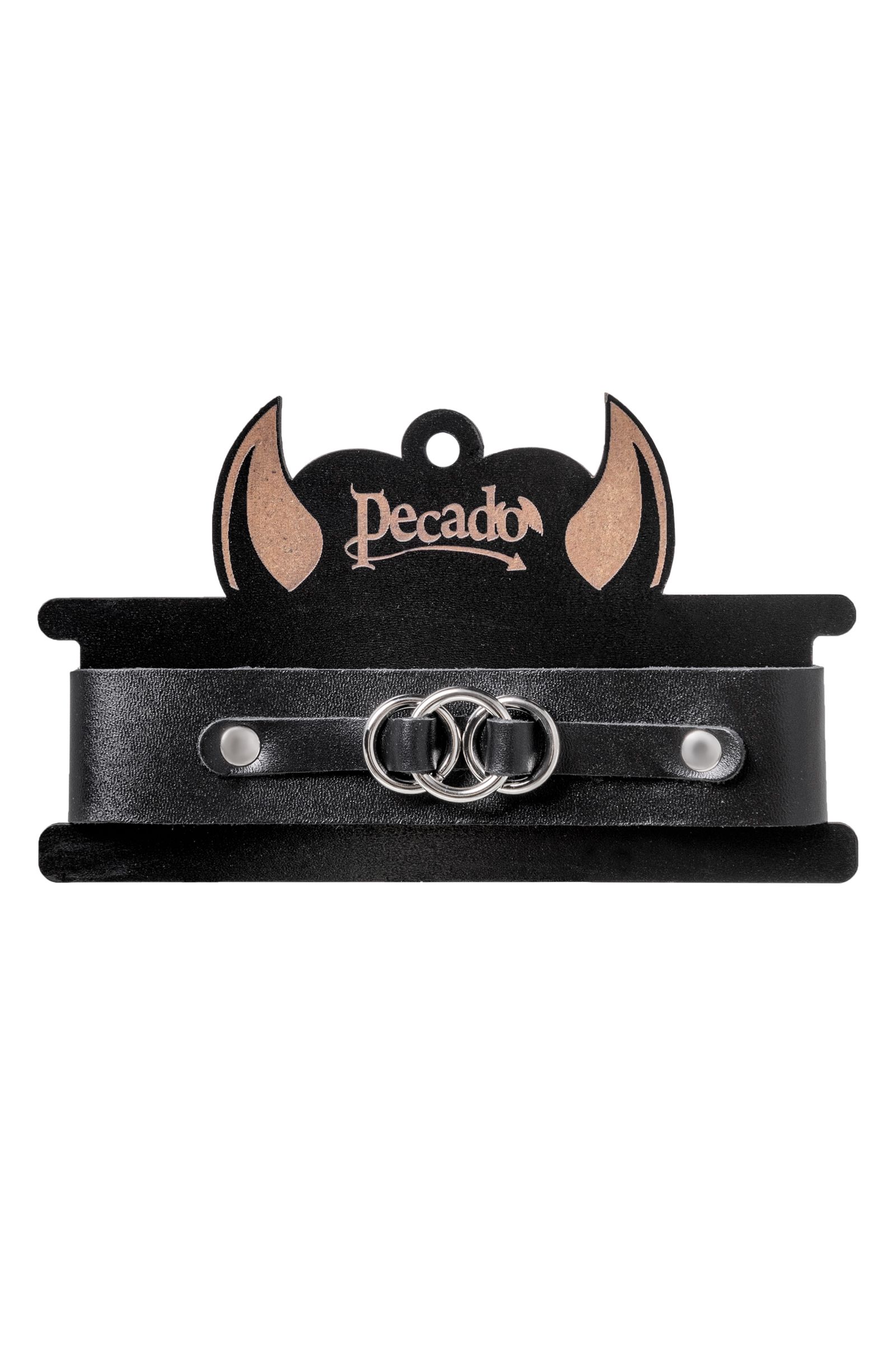 Чокер-ошейник со связанными кольцами от Pecado поможет расставить роли в сексуальных играх. Пикантный аксессуар изготовлен в лучших традициях БДСМ культуры. Девайс выполнен полностью вручную. Черный, износостойкий материал плотно прилегает к шее, не слетает и не оставляет следов на теле. Аромат кожаной ленты вызывает особенный трепет в теле. Атрибут универсального размера: подходит и мужчинам, и женщинам. С помощью отверстий и металлической пряжки можно подобрать удобный размер. Также благодаря пряжке чокер крепко фиксируется на необходимый обхват шеи Ширина - 1,5 см.
