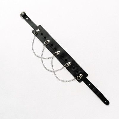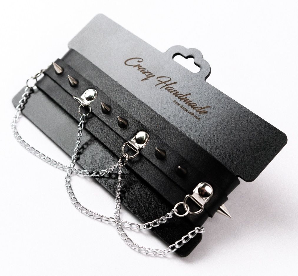 Черный чокер с шипами и металлическими цепочками