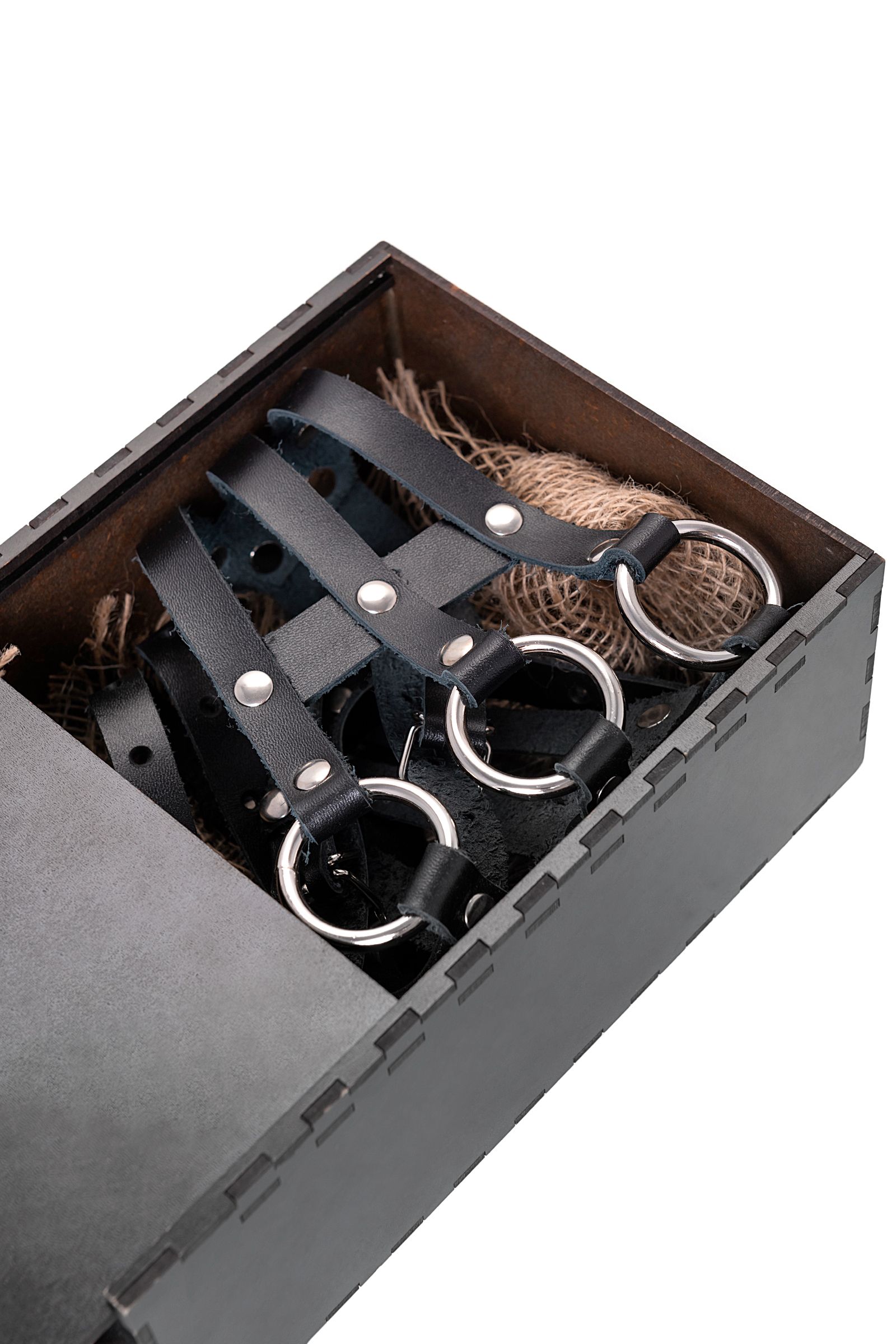 Сексуальный пояс от Pecado создаст будоражащий образ для БДСМ-сессии. Чёрные тонкие ремешки переплетены и соединяются в изящный аксессуар. Ремешки выполнены из мягкой, натуральной черной кожи вручную. Материал тактильно приятный и износостойкий. Металлические заклёпки по всей поверхности обеспечивают надёжность девайса. 3 стальных кольца по центру добавляют дерзости атрибуту. Идеальная посадка на тело регулируется с помощью металлической застежки. Портупея используется для сексуальных, ролевых БДСМ-игр. А также в качестве стильного аксессуара для тематических вечеринок и фотосессий. Универсальный размер.