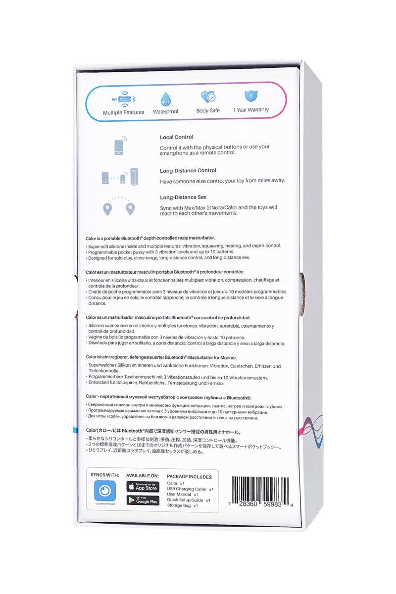 Небольшой легкий мастурбатор Calor комфортно помещается в мужской руке. Внутренняя часть игрушки сделана из силикона, что воссоздает естественные ощущения при проникновении, особенно с функцией нагрева. Calor подходит большинству мужчин и имеет возможность контроля сжатия захвата, чтобы каждый пользователь мог регулировать интенсивность давления собственноручно.