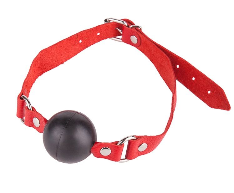 Чёрный кляп-шар с красным ремешком