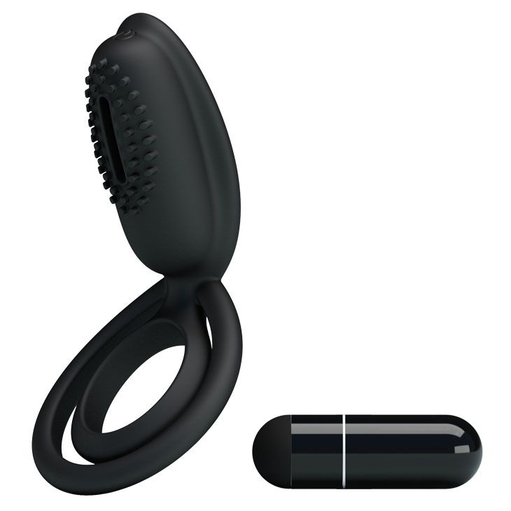 Эрекционное кольцо с вибрацией – любимая игрушка множества пар, так как ощущения, которые она дарит, обеспечивают сильный оргазм и у мужчины, и у женщины. Данное колечко представляет собой симбиоз классического кольца, подхвата для мошонки и большой клиторальной щеточки с вибрацией. Вибропуля съемная. Батарейки в комплекте.