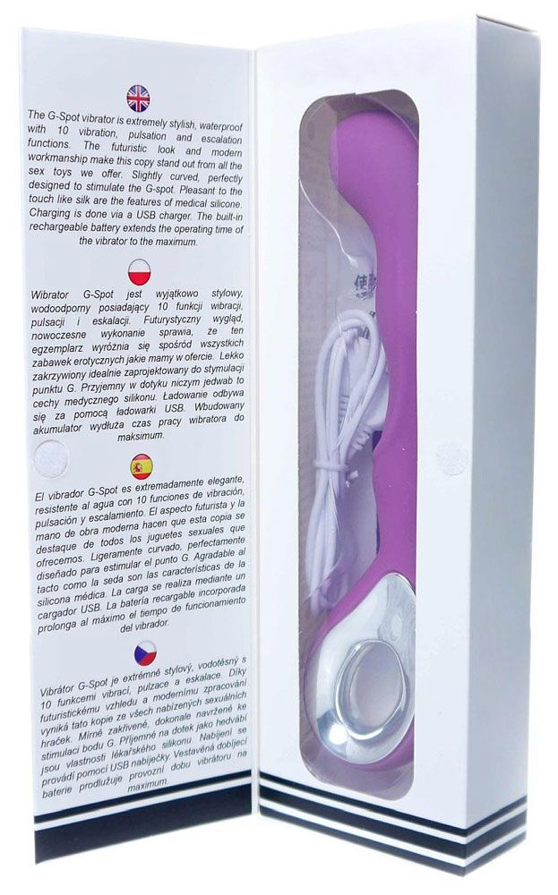Слегка изогнутый вибратор для прямой стимуляции точки G. Моторчик, расположенный в верхней части вибратора, позволяет насладиться в полной мере 10 программами стимуляции. Водонепроницаем. Зарядка осуществляется с помощью USB.