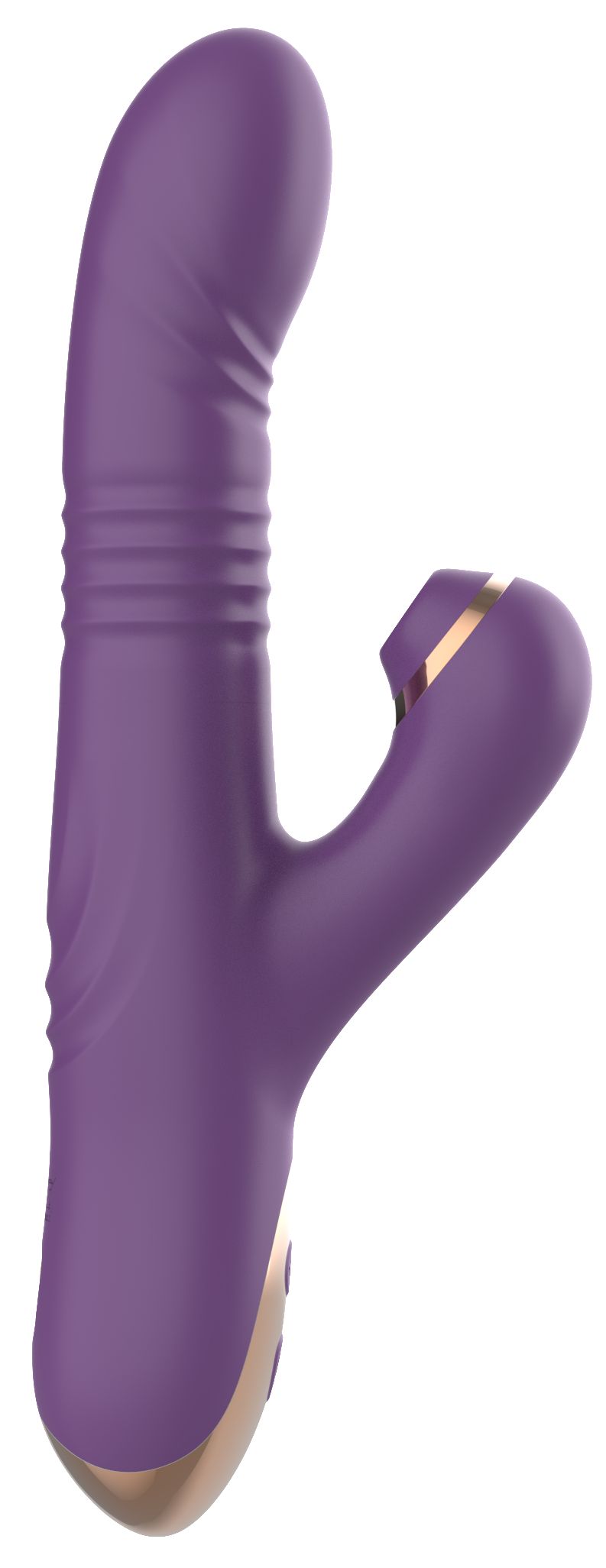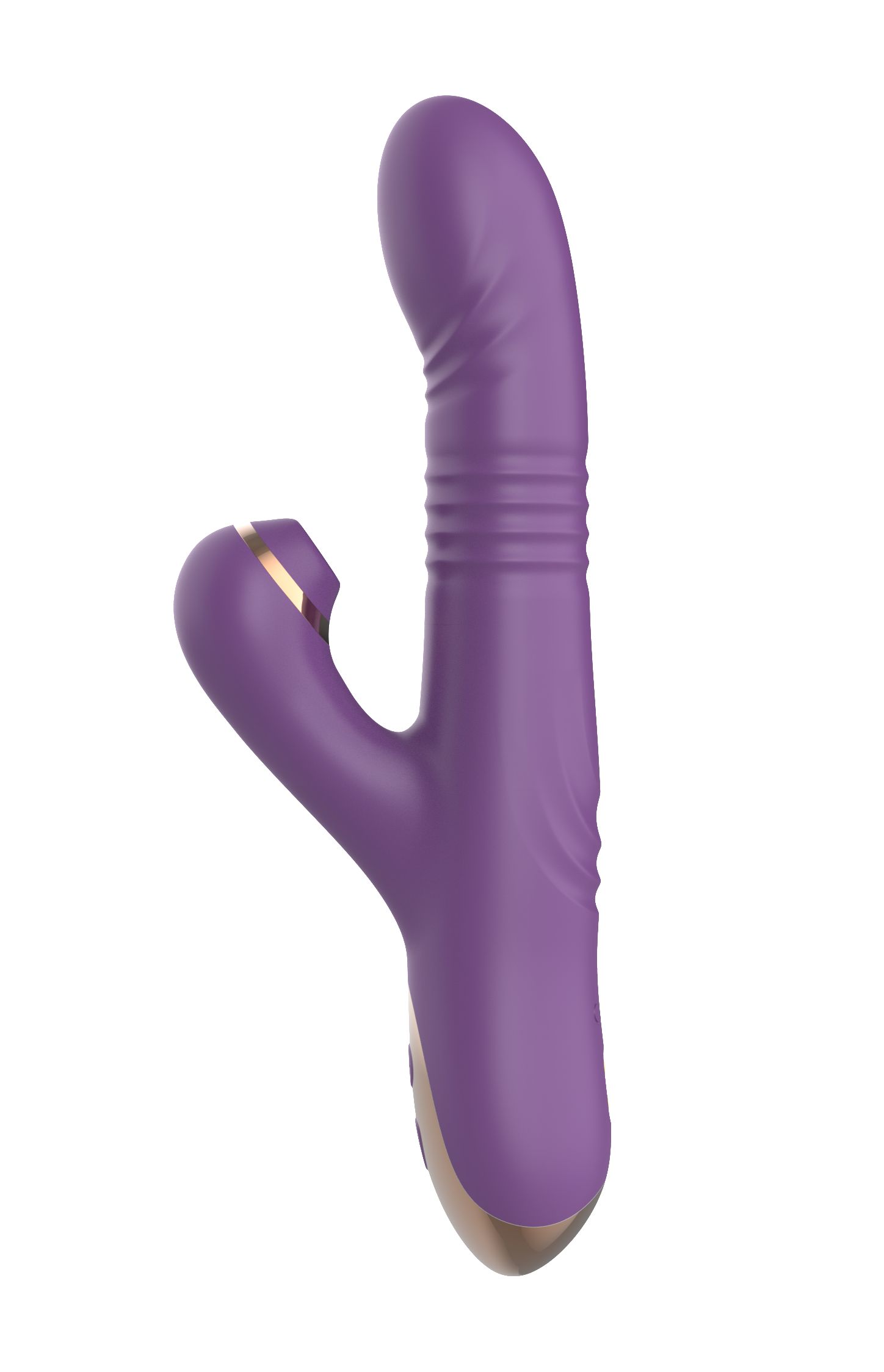 Элегантный и мощный вибратор сочетает в себе уникальную функциональность и эргономичный дизайн. Вагинальная часть обеспечивает 10 фрикционных режимов и 10 режимов вибрации. Клиторальный кролик также оснащен 10 режимами вакуумной стимуляции. Вагинальную и клиторальную части можно использовать отдельно или одновременно. Перезаряжается от USB. Время зарядки: 90 минут. Время работы: до 60 минут. Вибратор изготовлен из силикона, водонепроницаем и прост в использовании. Верхняя кнопка: включает/выключает вагинальную часть и переключает режимы. Нижняя кнопка: включает/выключает клиторальную часть.