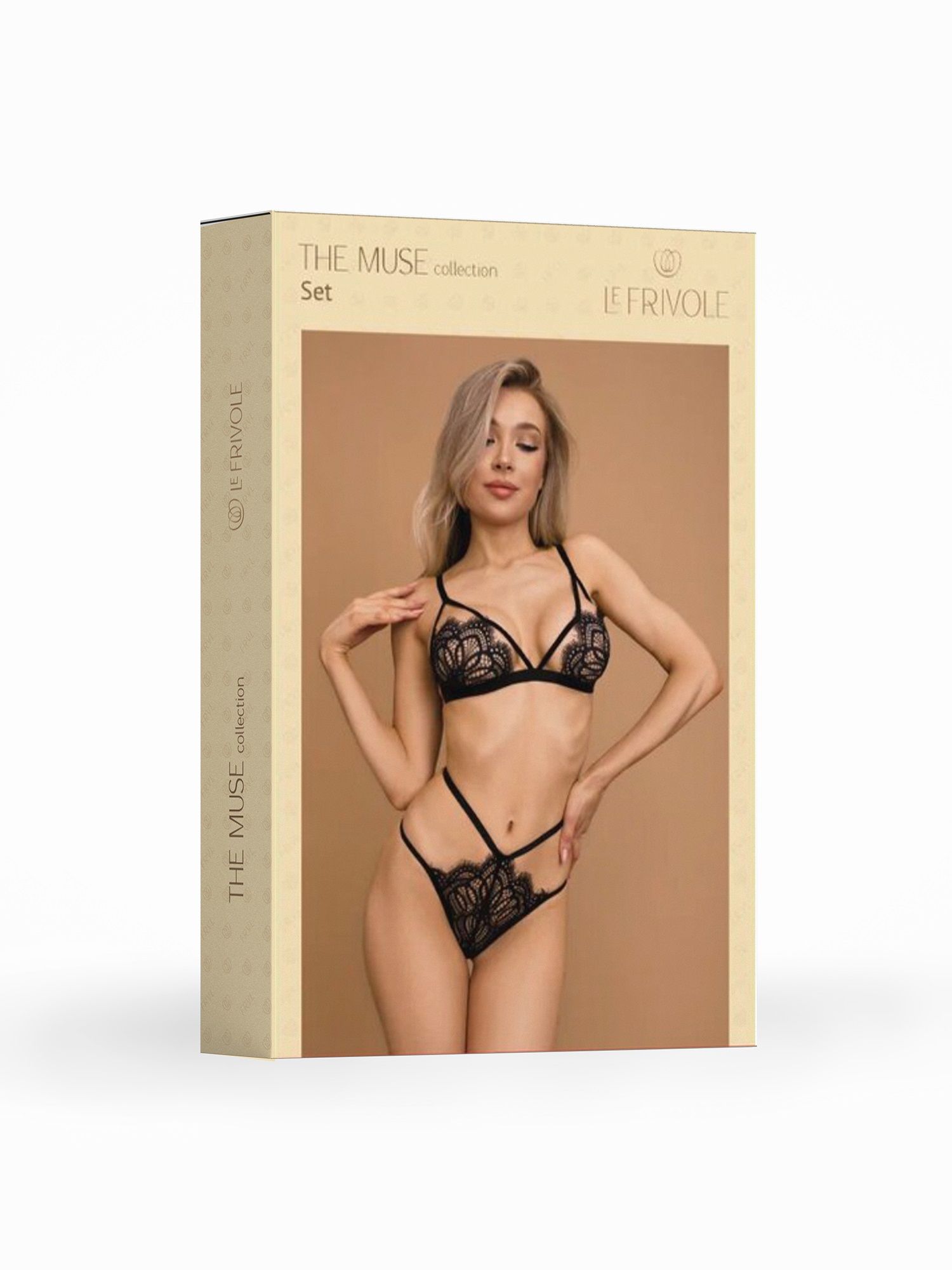 Этот контурный комплект станет настоящим искушением для всех, кто ищет нечто особенное и необычное. Лиф выполнен из фактурного кружева крупного узора, а эластичная лента контурирует грудь и придает своей обладательнице неповторимый и сексуальный вид. Трусики из того же кружева, представляют собой шортики с завышенной талией. Но имитируют контур трусиков лишь эластичные резинки, а открытая часть тела между лентами создает загадочный эффект, подчеркивая красоту женской формы. Этот комплект белья станет прекрасным выбором для женщин, которые хотят выглядеть неповторимо и уверенно. Он подчеркнет все достоинства женского тела и позволит создать чувственный и романтичный образ. В комплекте: бюстгальтер, трусики.