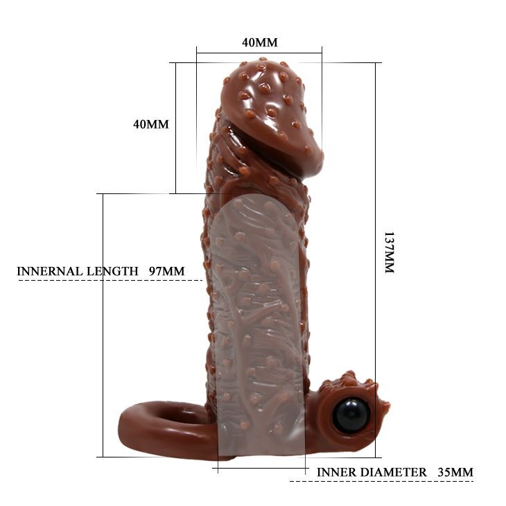Коричневая насадка с точками, клиторальным стимулятором и подхватом - 13,7 см.