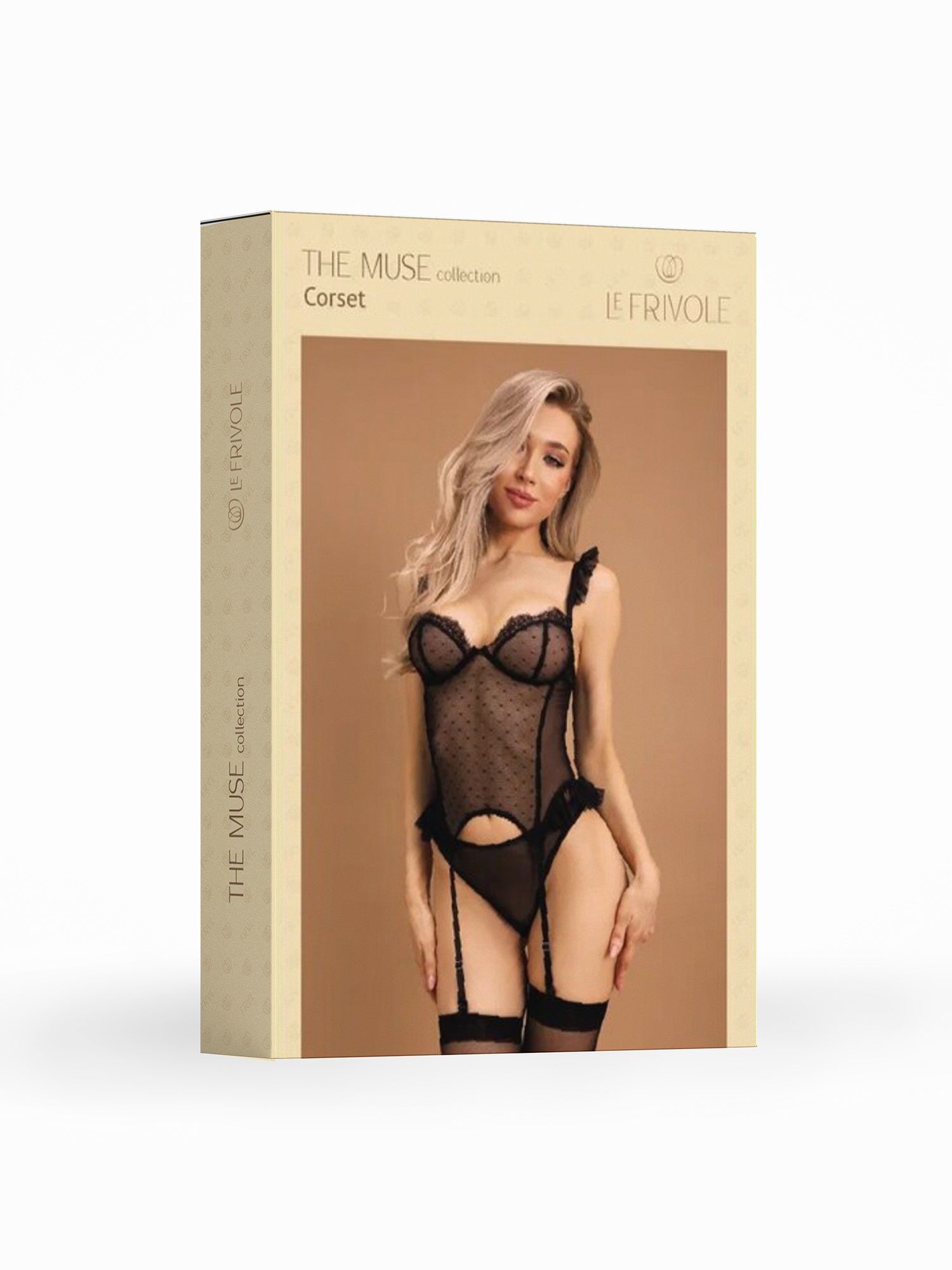 Этот корсаж из сетки мелкого узора «мушка» обладает атмосферой изящества и чувственности. Заметную часть дизайна занимают сборки на тонких бретелях, которые создают эффект крыльев бабочки, придают образу легкость и изящество. Широкие разрезы на бедрах, также украшенные сборками, создают эффект юбки и придают образу игривый и привлекательный характер. Фигурные вытачки вдоль тела позволяют создать более выразительную фигуру, подчеркнуть ее изгибы и сделать ее более стройной. Гартеры, прикрепленные к корсажу, позволяют легко крепить чулки и создавать совершенный образ. Эта модель корсета сделана для того, чтобы вы почувствовали себя самой красивой и желанной женщиной на свете. В комплекте: корсаж, трусики. Чулки не входят в комплект!