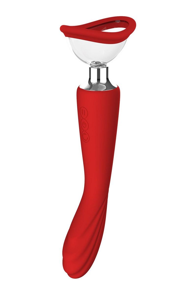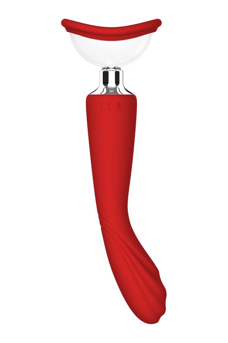 Красный двойной стимулятор Georgia - вибратор и вакуумная помпа. Вибросторона со стимулирующими выступами имеет 7 ритмов вибрации и может использоваться для точки G. Вакуумная сторона (2 сменные насадки разной формы) идеальна для вакуумного массажа клитора, половых губ, сосков. Водонепроницаемость IPX7.
