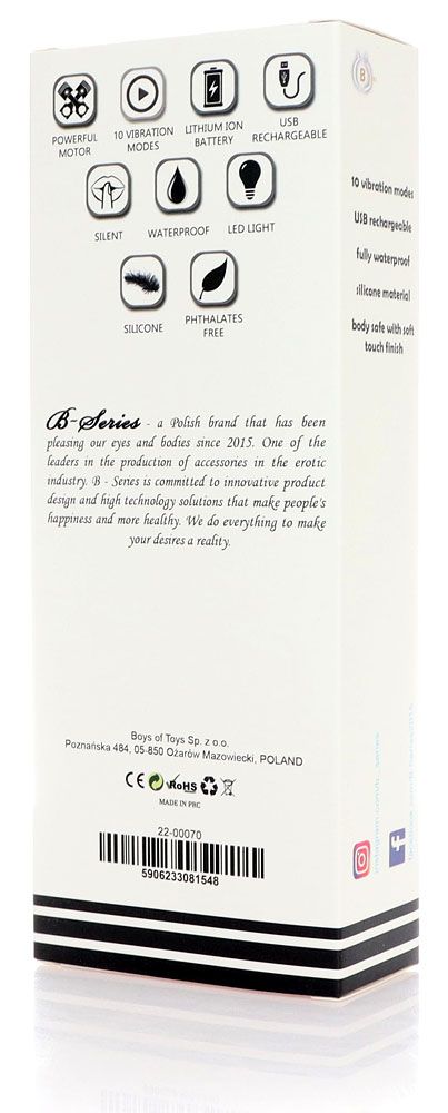 Слегка изогнутый вибратор для прямой стимуляции точки G. Моторчик, расположенный в верхней части вибратора, позволяет насладиться в полной мере 10 программами стимуляции. Зарядка осуществляется с помощью USB. Водонепроницаем.