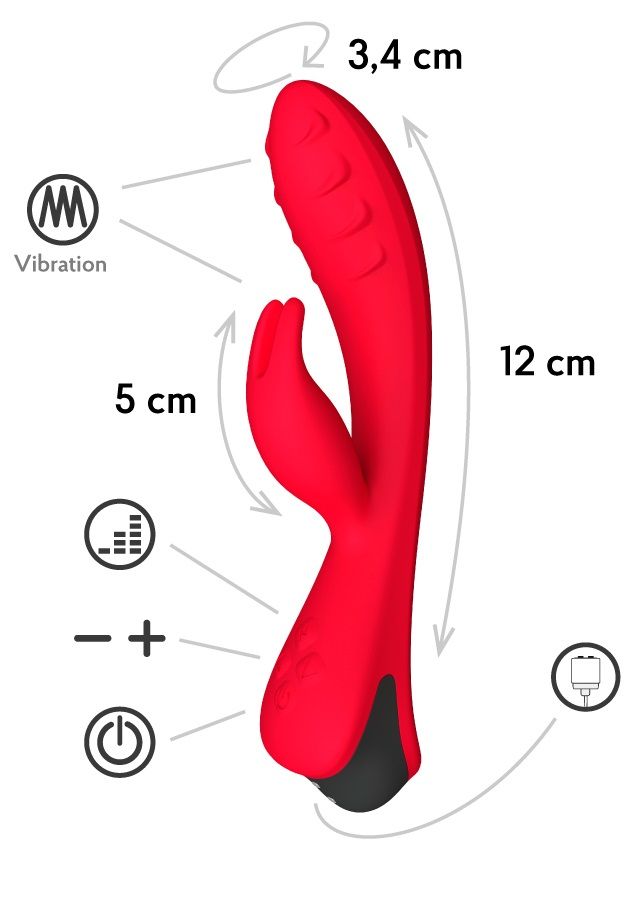 Вибратор-кролик Lepus, пользующийся несомненным успехом у девушек и женщин, выполнен в возбуждающем алом цвете. Талантливо имитируя оральные ласки он дарит наслаждение за наслаждением без пресыщения с помощью встроенного режима оргазма. А рельефный гибкий ствол для внутренней стимуляции длиной 12 см имеет 8 режимов вибрации, которые, несомненного, усилят ощущения! Благодаря магнитной зарядке полностью водонепроницаем. Рабочая длина - 12 см.