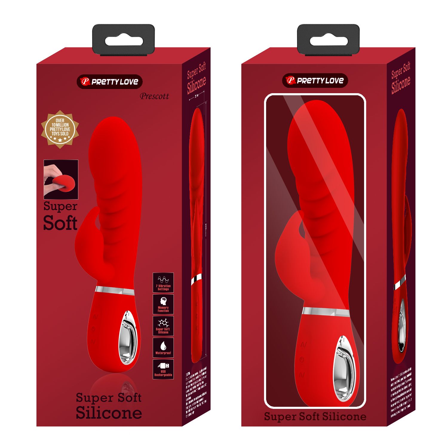Красный вибратор-кролик с рёбрышками Prescott - 20 см.