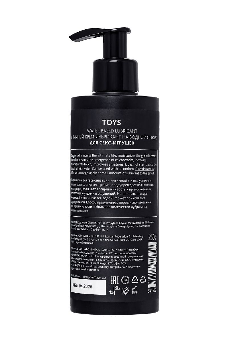 Что наша жизнь? Игра! А лубрикант Toys от Erotist — неотъемлемый атрибут идеальной интимной игры. Он снижает уровень трения, повышает степень наслаждения и бесследно исчезает после выполнения своих задач. Но самое большое его достоинство — лубрикант Erotist Toys можно использовать с секс-игрушками из любого материала! Лубрикант Erotist Toys имеет водную основу: он гипоаллергенен, совместим с презервативами, не оставляет следов и легко смывается водой.