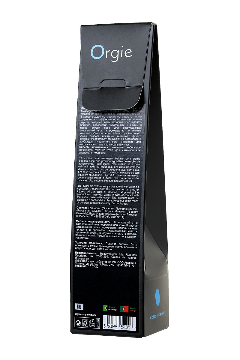 Вкусное съедобное массажное масло с легким согревающим эффектом и умопомрачительным вкусом сахарной ваты позволит Вас сделать близость невероятно чувственной и яркой. В набор входит перо для возбуждающей сексуальной игры и руководство по технике массажа губами и пером. Масло при контакте с кожей создает приятные тепловой эффект, который способствует возбуждению разогревая и пробуждая чувствительность. Подходит для массажа всего тела и для оральных ласк.