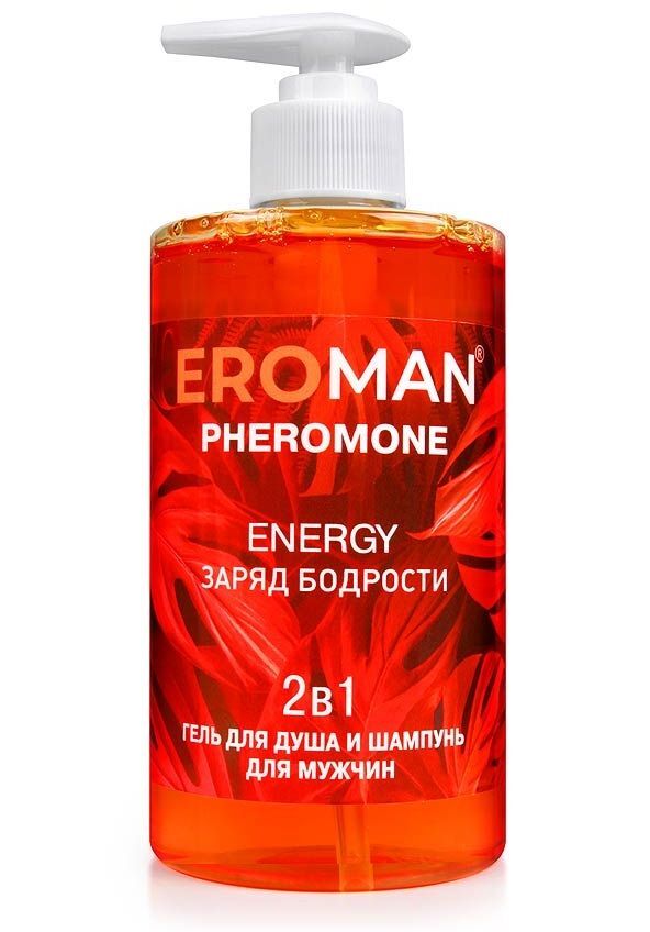 Мужской гель для душа и шампунь ENERGY с феромонами. Превосходно очищает кожу и волосы, обеспечивая ежедневный уход. Бодрящий аромат геля мгновенно пробуждает, улучшает настроение и заряжает энергией. Гель надолго сохраняет ощущение чистоты, свежести и комфорта. Феромоны повышают привлекательность, соблазняют и дарят уверенность.