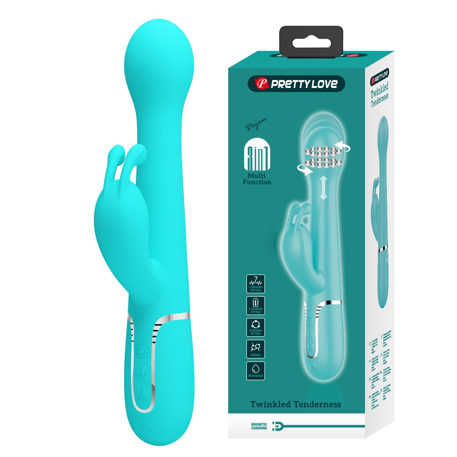 Мятный вибратор-кролик Dejon с ротацией бусин и возвратно-поступательными движениями - 22,6 см.