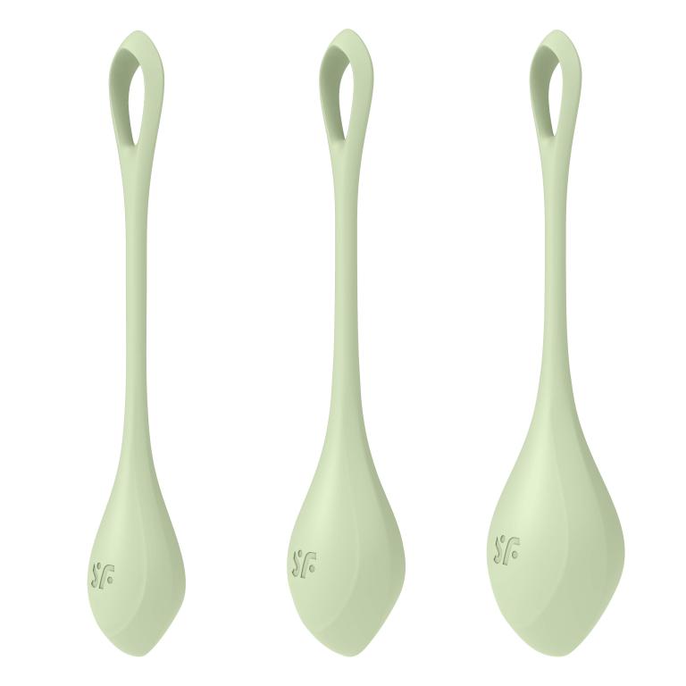 Yoni Power 2 – набор из трех одиночных шариков разного веса. Идеальные вагинальные тренажеры для начинающих, чтобы повысить тонус интимных мышц и снизить вероятность болезней мочеиспускательной системы. Удобная петелька позволяет легко извлечь тренажер при необходимости в любой момент. Для комфортности введения и получения максимально приятных ощущений рекомендуется использовать смазку на водной основе или гибрид. Общая длина - 12, 13 и 14 см.