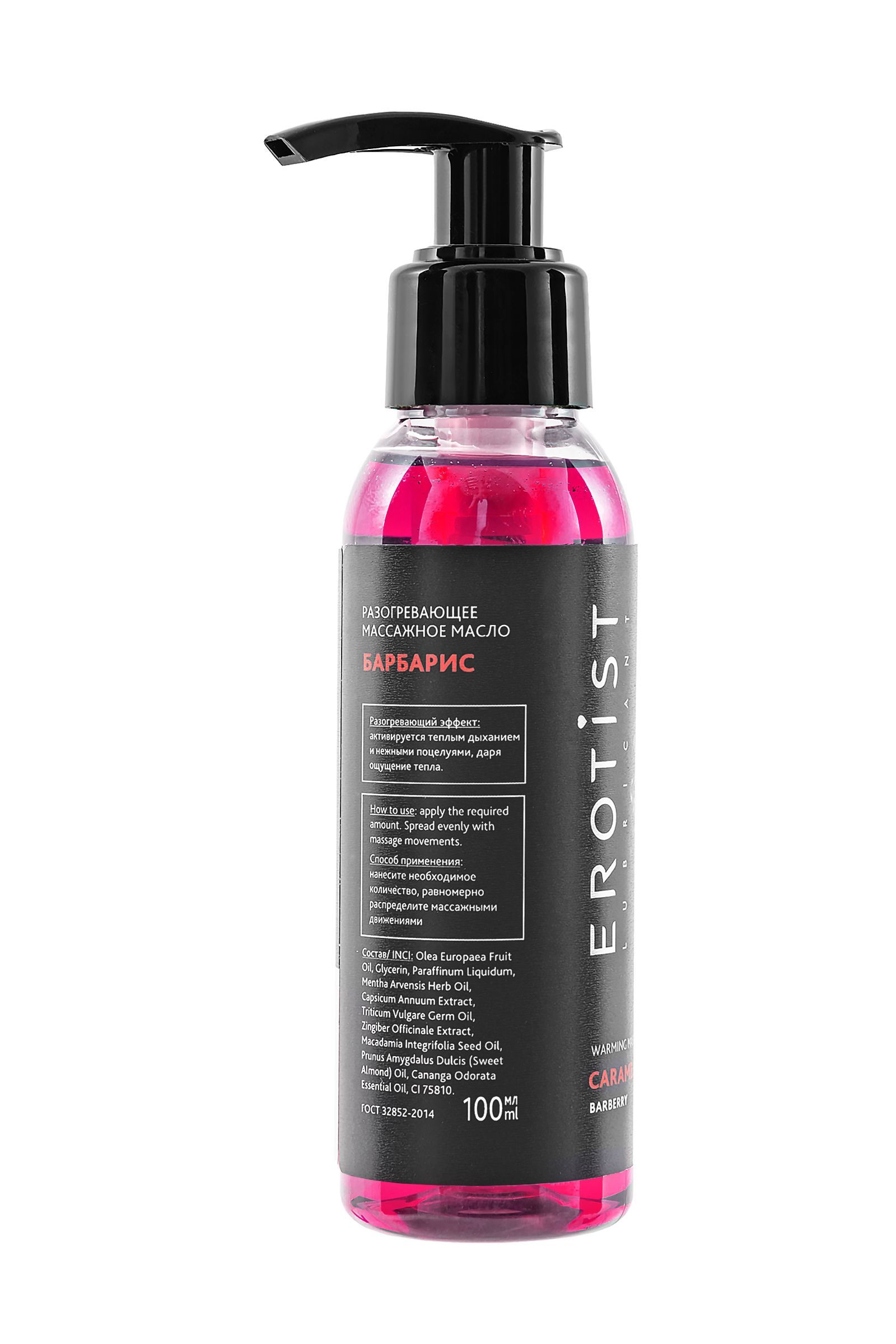 «Барбарис» из серии Caramel Club — это яркое сочетание сладости и лёгкой кислинки, знакомое с детства. Его аромат добавляет игривости и свежести, а эффект мягкого согрева делает массаж живым и чувственным. Масло содержит натуральные компоненты: оливковое масло, масло сладкого миндаля, макадамии и зародышей пшеницы, которые ухаживают за кожей, питая и увлажняя её. Экстракт имбиря и перца стимулируют мягкий разогревающий эффект, повышая чувствительность. Масло мяты и иланг-иланга добавляют свежести и расслабления, превращая массаж в настоящий ритуал.