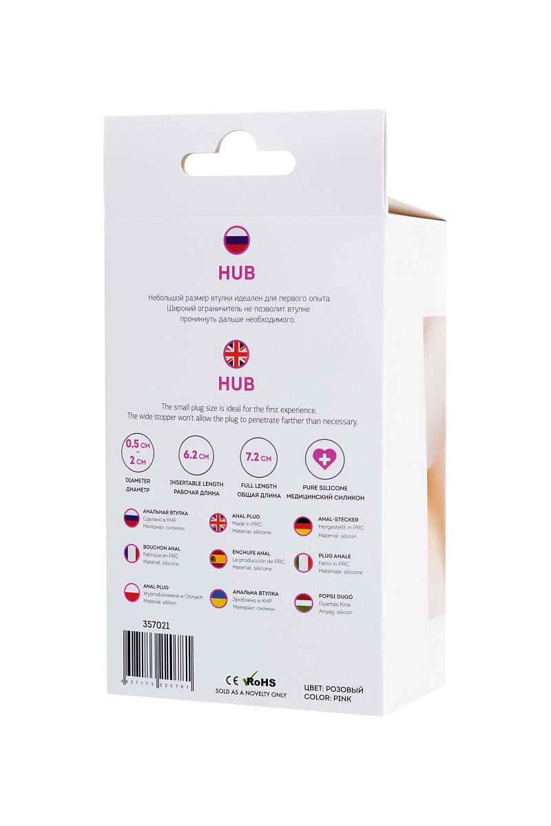 Розовая анальная втулка Hub - 7,2 см.