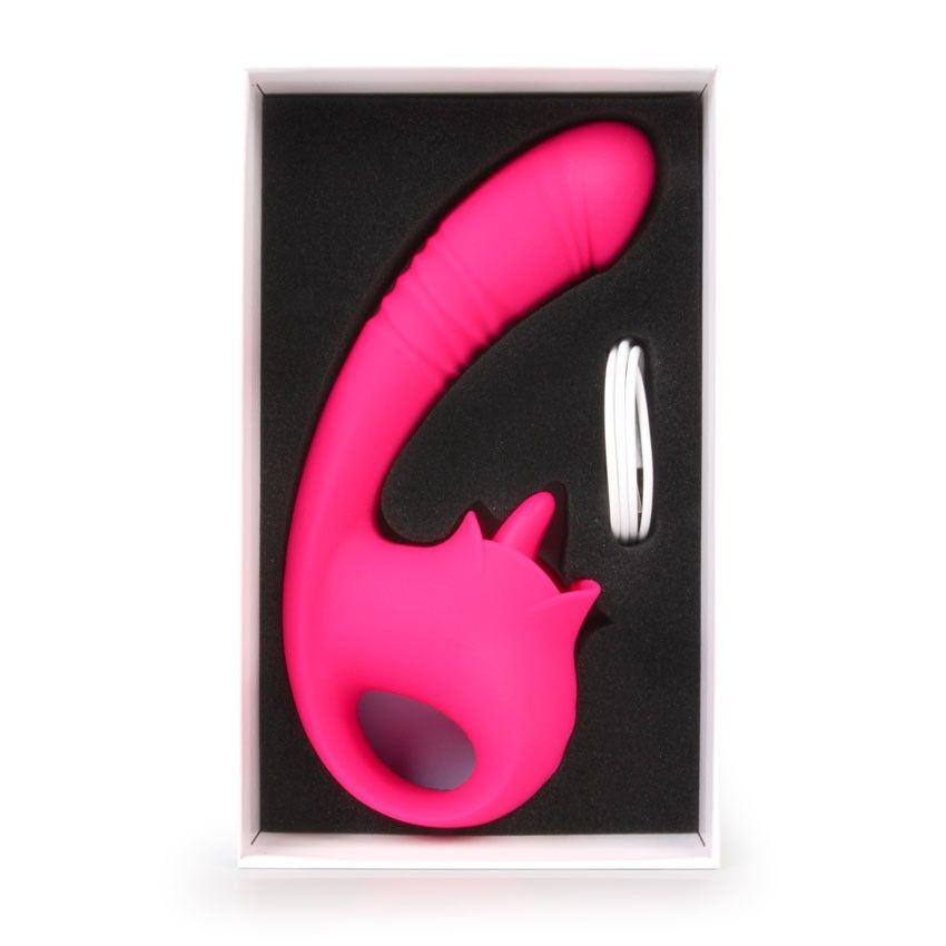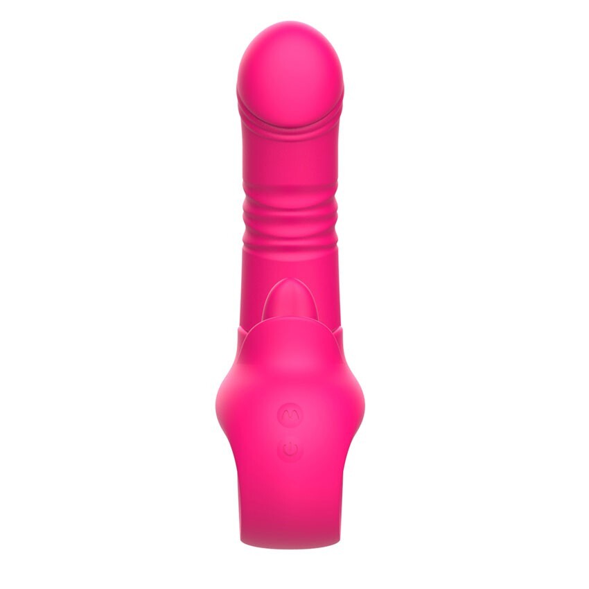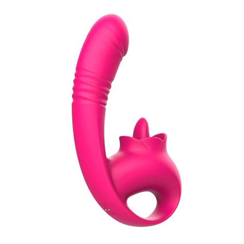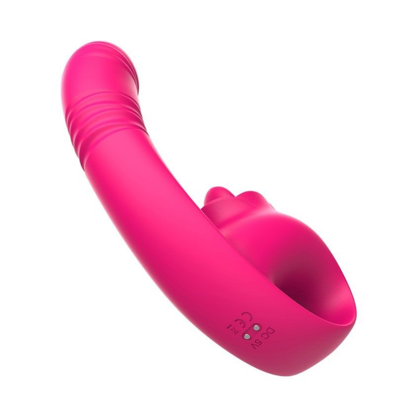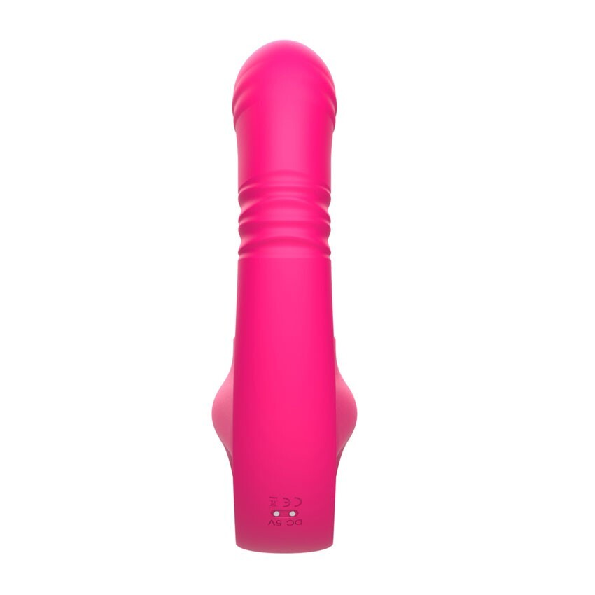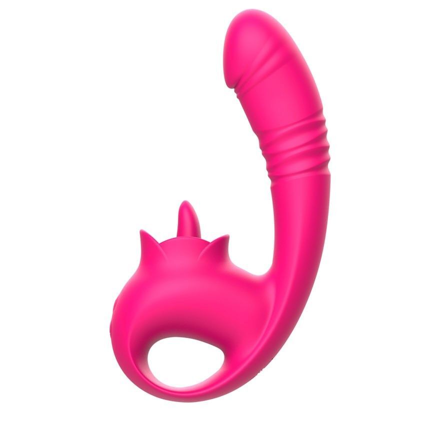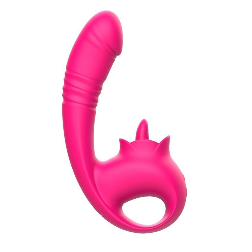 Розовый изогнутый вибратор с фрикциями - 19,7 см.
