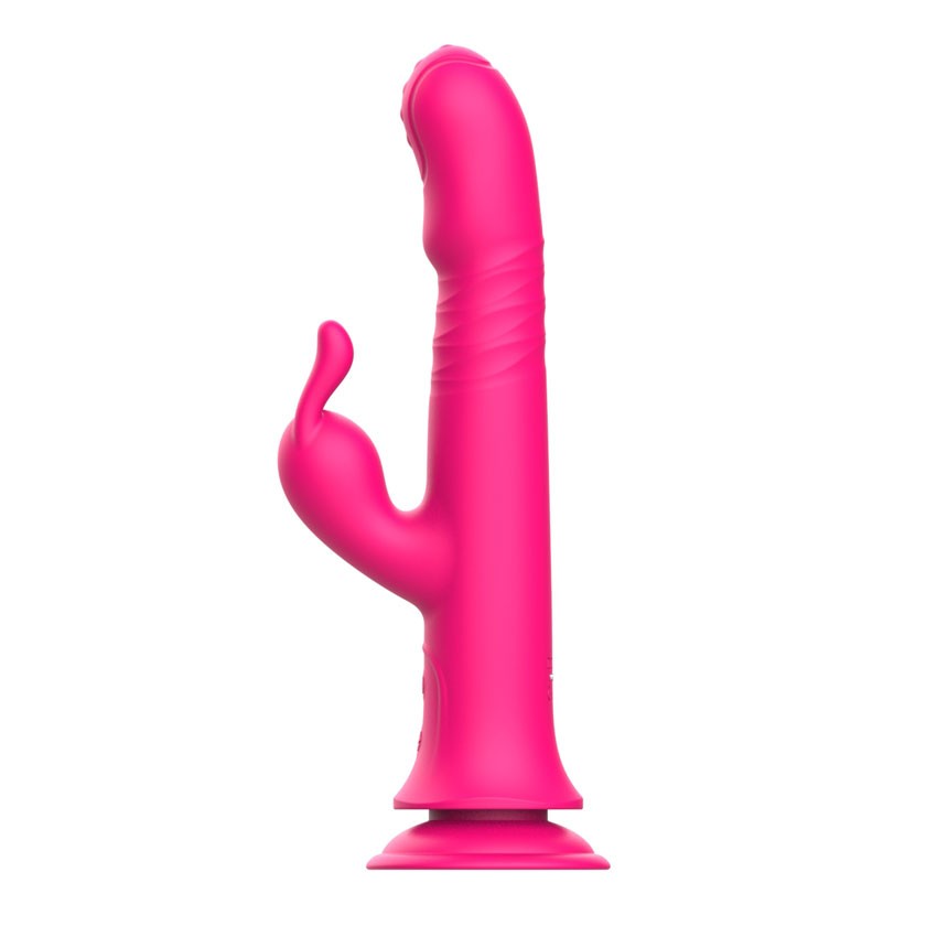 Оригинальная секс-игрушка на присоске подарит незабываемые эротические ощущения и вознесёт на вершину блаженства. Разнообразные режимы вибрации, вращения головки (ротации) и возвратно-поступательных движений ствола усилят возбуждение. Отросток-зайчик с виброрежимами для стимуляции клитора доведёт до пика наслаждения. 10 режимов вибрации, 10 режимов возвратно-поступательных движений, 10 режимов ротации. Ротация и возвратно-поступательные движения присутствуют исключительно в стволе. Вибрация работает и в стволе, и в отростке-зайчике. Присоска надёжно удерживает гаджет на ровной горизонтальной или вертикальной поверхности. Рабочая длина - 14,2 см.