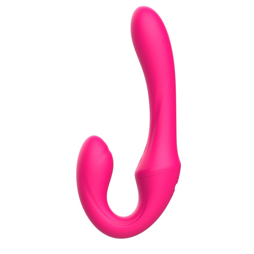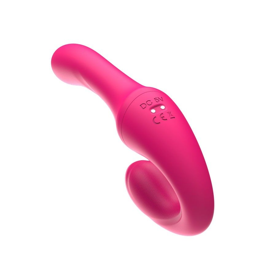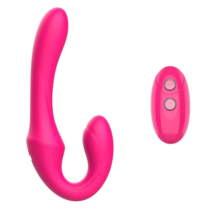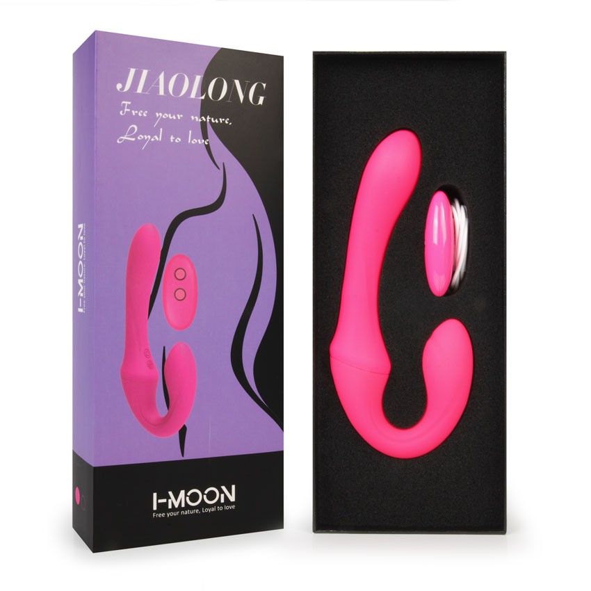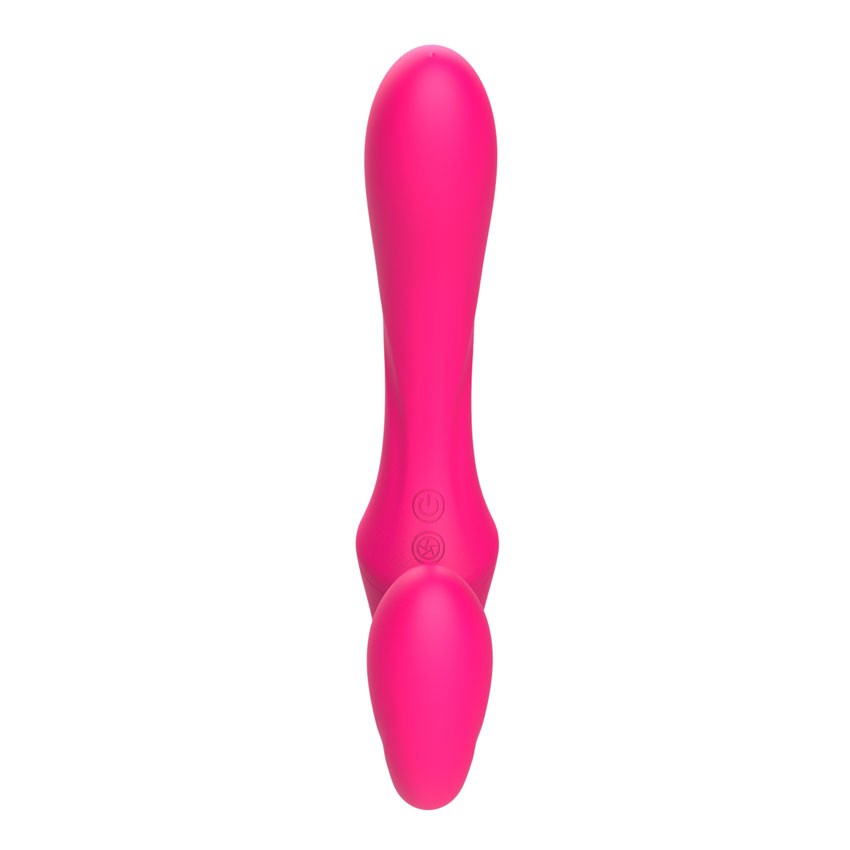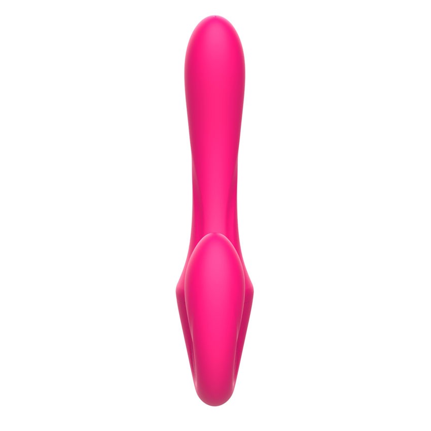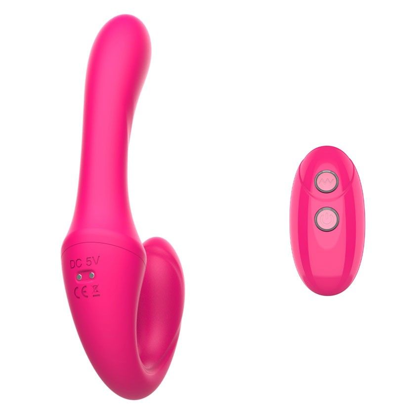 Розовый вибратор с клиторальным отростком и пультом ДУ- 19,6 см.
