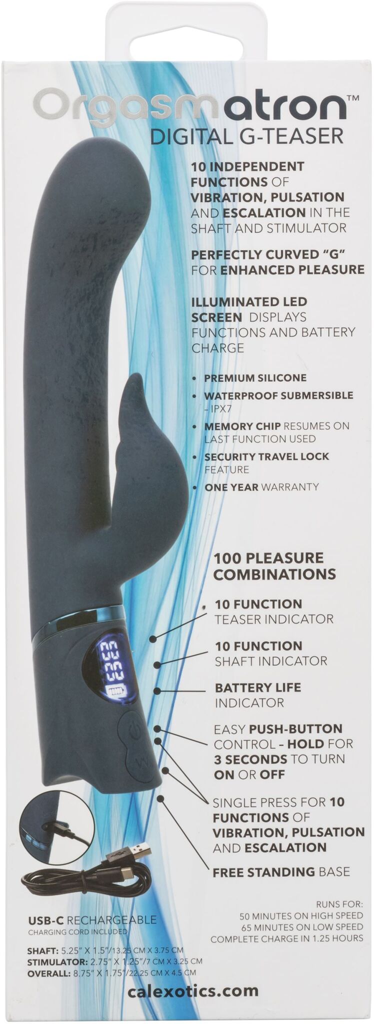 Digital G-Teaser- это перезаряжаемый вибромассажер с изогнутой головкой и клиторальным отростком. Идеально простимулирует зону G и клитор. Он изготовлен из гипоаллергенного мягкого силикона премиум-класса безопасного для тела, не содержащего фталатов, обеспечивающего приятные и гарантировано безопасные тактильные ощущения.