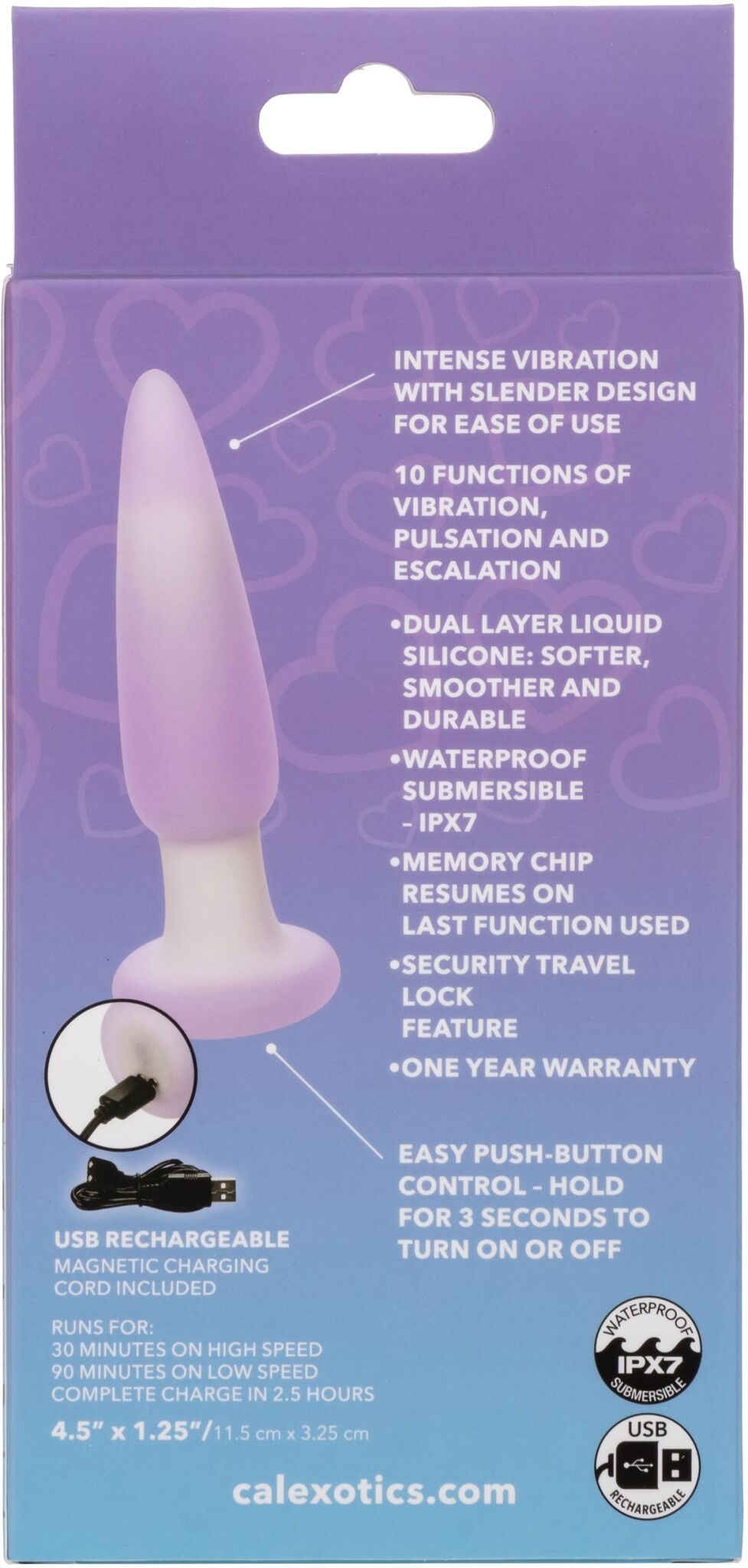 Кроме того, его современный чип памяти запоминает вашу последнюю использованную функцию, позволяя без усилий продолжить ваше приятное путешествие. Функция блокировки безопасности для путешествий гарантирует, что ваши приключения будут столь же незаметными, сколь и захватывающими. Пробка заряжается через USB. Полная зарядка занимает всего 2,5 часа, предлагая вам 30 минут высокоскоростной интенсивности или 90 минут продолжительного удовольствия на более низкой скорости.