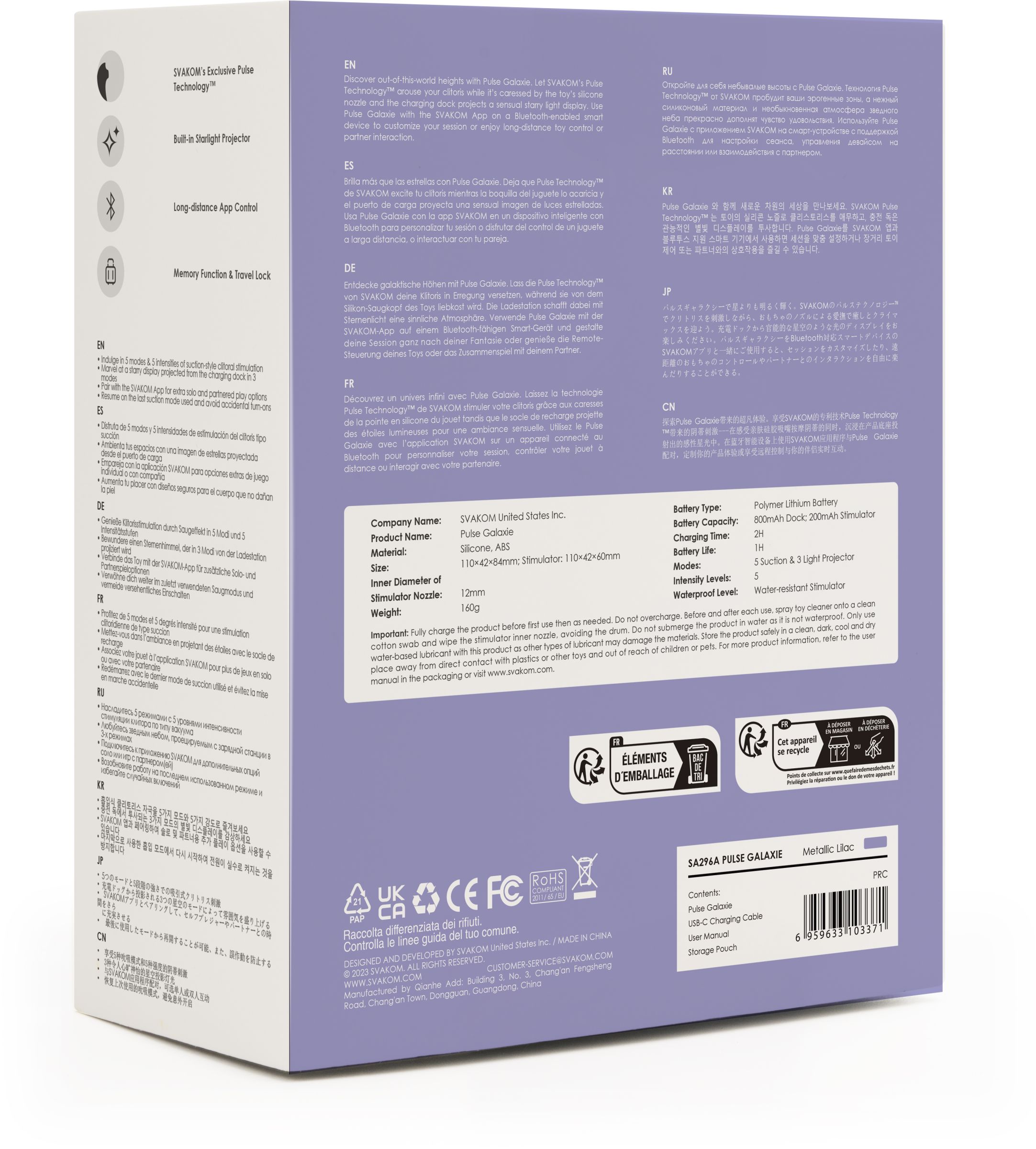 Будучи действительно продвинутой игрушкой, Pulse Galaxy управляется через мобильное приложение от Svakom. Всегда можно выйти за рамки и синхронизировать стимулятор с любимыми треками: получать наслаждения под знакомые ритмы.
