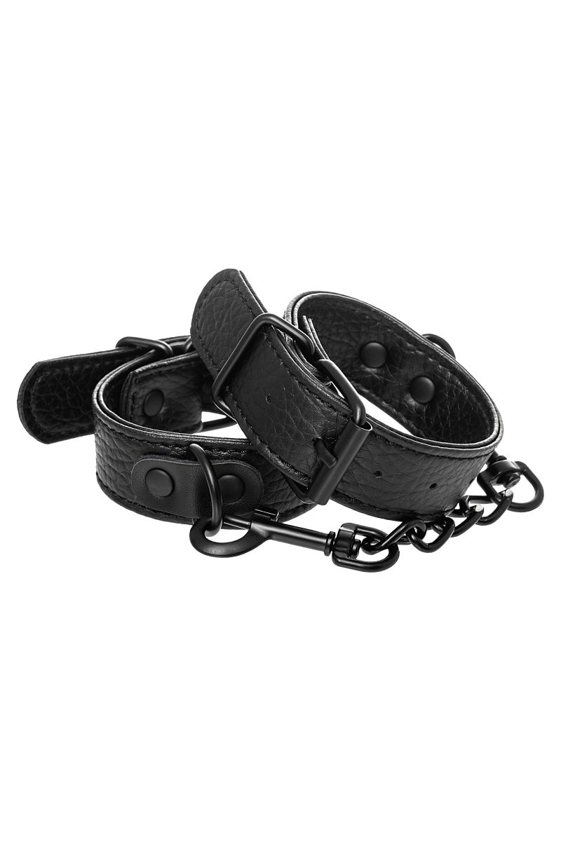 Эти аккуратные наручники из черной PU-кожи с черной же цепочкой-сцепкой нельзя назвать просто ограничителями свободы. Вся металлическая фурнитура выдержана в стиле строгого подчинения, не отвлекая внимание от игрового процесса. Они станут для вас стильным аксессуаром и дополнят любой образ. Благодаря универсальным цвету и форме, они подойдет партнеру любого пола. Фиксируйте руки перед собой или за спиной, развивайте степень своего доверия к Мастеру и свои скрытые желания. Длина манжет - 26,5 см., ширина - 2,5 см.