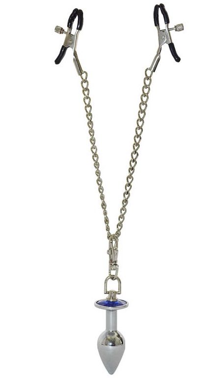 Зажимы для сосков с анальной пробкой - это девайс, с помощью которого вашей фантазии не будет предела, а так же подарит вам приятные ощущения сладкой боли. Зажимы оснащены пружинным механизмом, за счет чего легко и удобно фиксируются на месте, винтики позволяют отрегулировать степень давления в соответствии с индивидуальными предпочтениями. Длина цепочек - 15 см.