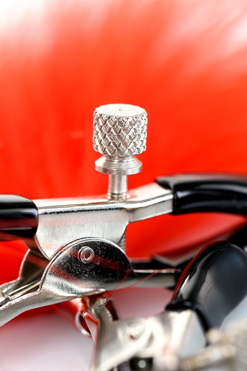 Пожалуй, самые милые из всех зажимов - украшенные перьями. Они стимулируют не только сжатием сосков, но и щекочут грудь. Сдавливание регулируется болтиком и может быть усилено или уменьшено во время интимной игры. Покрытие на концах зажимов защищает нежную кожу.