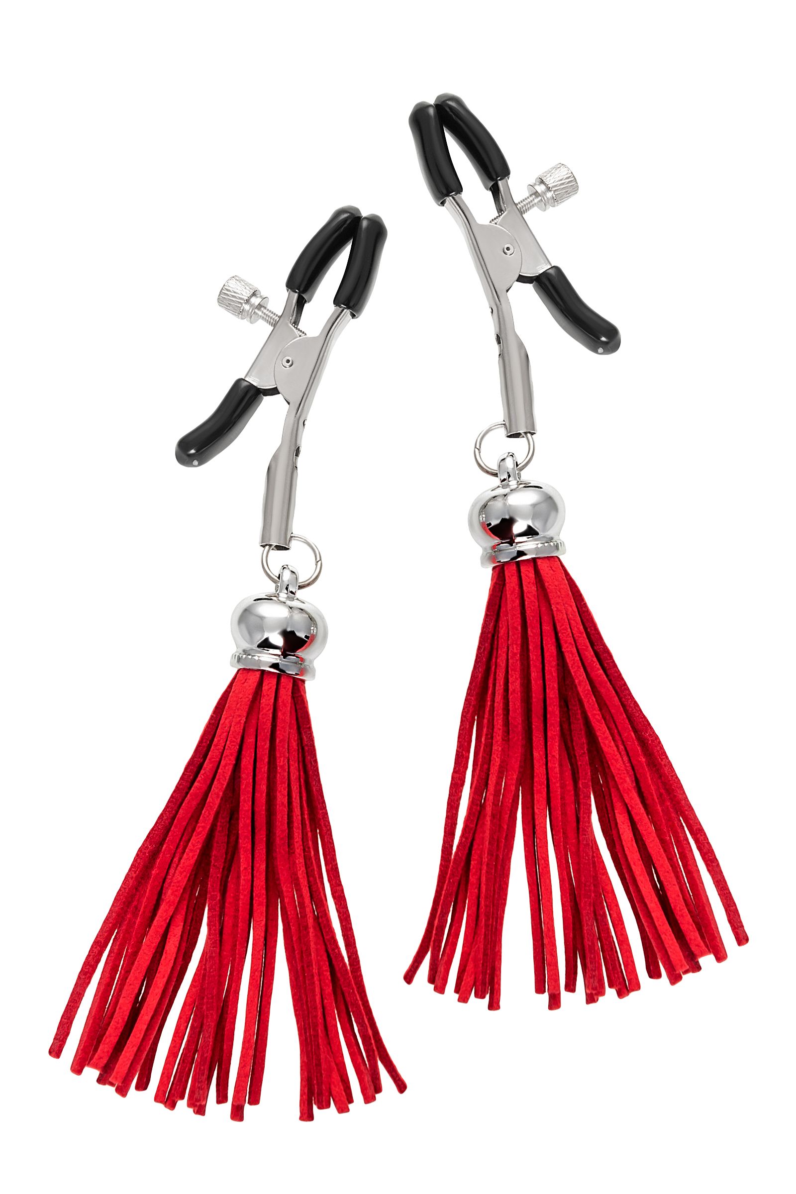 Хотите усилить ощущения от страстных игр с партнером? Увеличить степень возбуждения до невозможного можно с помощью зажимов-прищепок ручной работы от Рecado. Невероятно сексуальный аксессуар пробудит фантазию и повысит чувственность эротических зон. Мягкие резиновые накладки оберегают соски от повреждений. Металлический винт регулирует степень сжатия зажимов: от нежно-приятного до сильно-грубого. На концах черные резиновые наконечники, для безопасного воздействия на нежные участки тела. Компактный размер удобно вмещается как в женскую, так и в мужскую руку. Кисточки из натуральной замши не только визуально украшают эротический атрибут, но и еще утяжеляют его. Для самых смелых и искушенных любителей доминировать и подчиняться. Длина кисточки - 8,5 см.