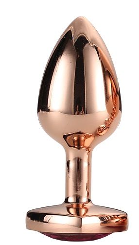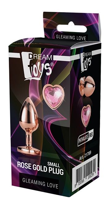 Золотистая анальная втулка с кристаллом-сердечком розового цвета - 7,1 см.